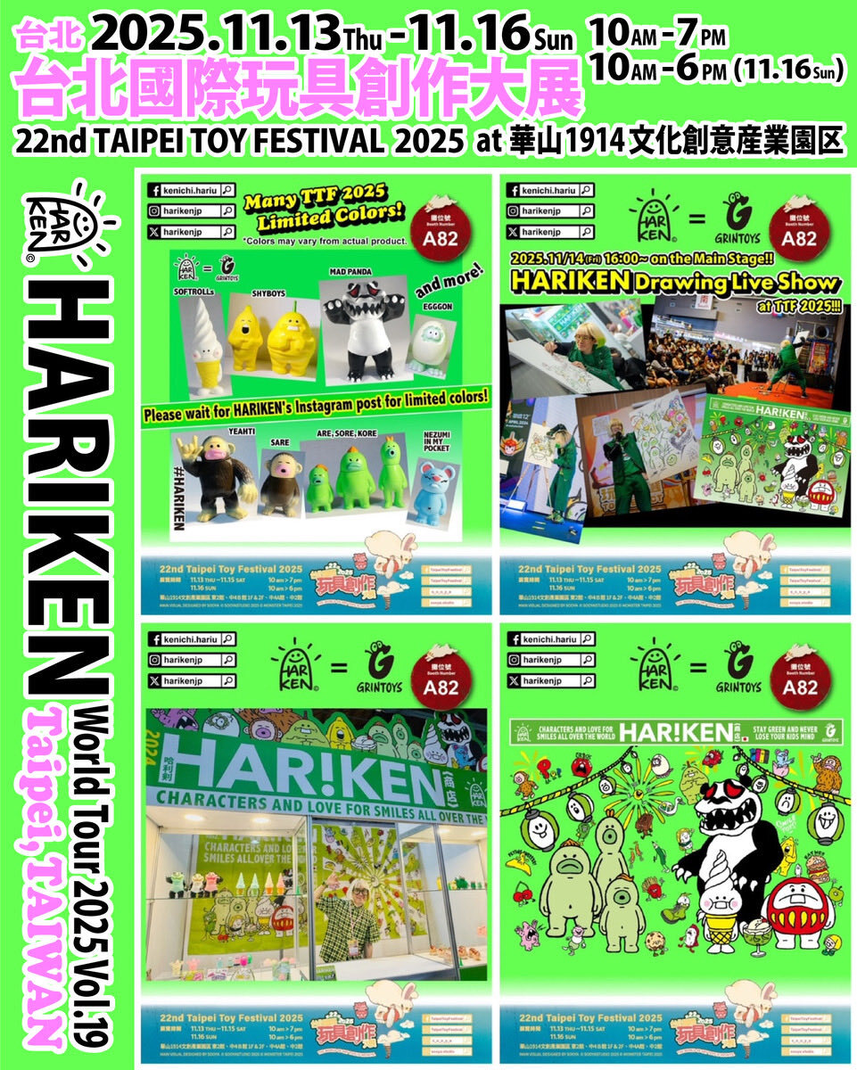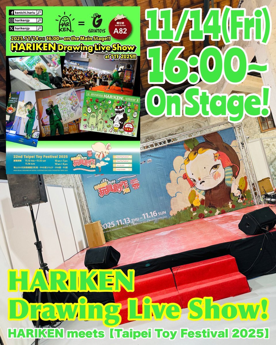 📣 我們在台北見🤟🦁🍀📣 今年も台北、TTFに出展します🚀 11/14(Fri)は16時〜ステージで HARIKEN Drawing Live Showも🎨 新たな出会いと、 再会を楽しみにしております🤝 皆さまのご来場を、 心よりお待ちしております🤟🦁🍀 “キャラクターと愛で、世界を笑顔に”🌎 — 🚀 HARIKEN World Tour 2025 x.com/harikenjp/stat…