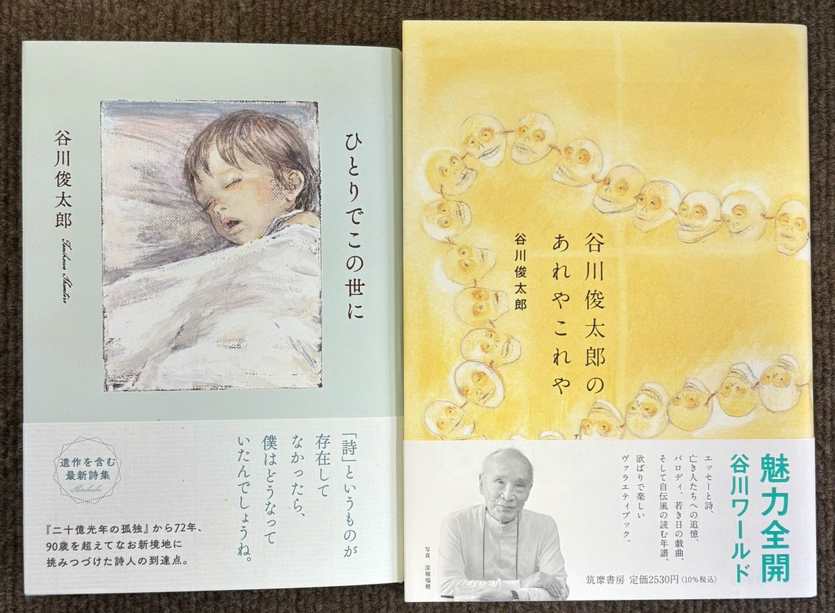谷川俊太郎 『ひとりでこの世に』(新潮社) 『谷川俊太郎のあれやこれや』(筑摩書房) #志津に入荷してます pic.x.com/7rrutRiL4c