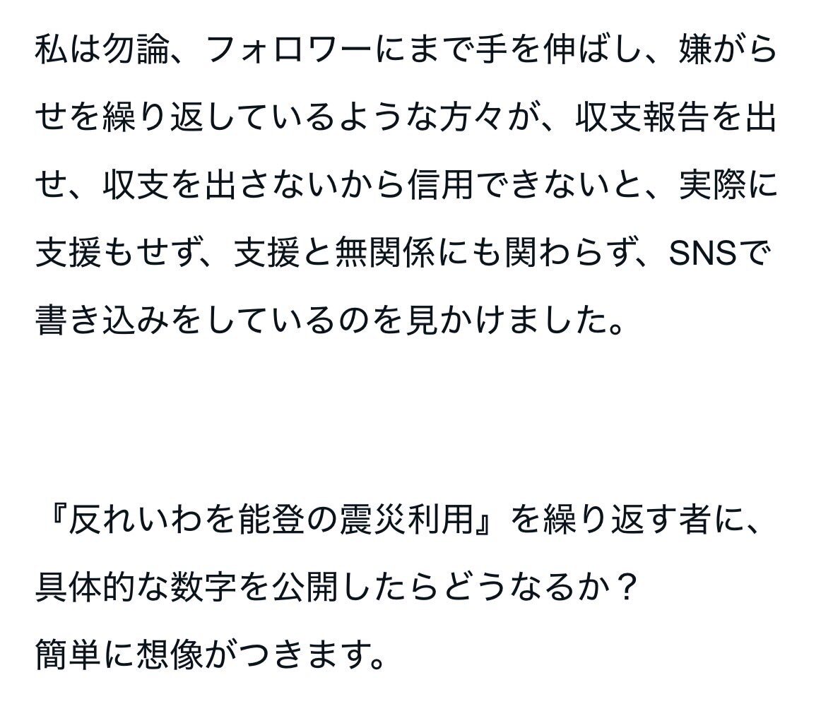 1年10ヶ月も経つと記憶も薄れるのかな?実際に寄付した人達から収支報告出せと散々言われたし、その人達をブロックして法的措置だの言ってたよね。反れいわとか言うけど「おいこら役所」も「1日1食」も「人でなし」も「賞味期限切れの水」も、れいわのれの字も出してない頃の話だし。少し無理あるよ? pic.x.com/mVBR3Jtrxp