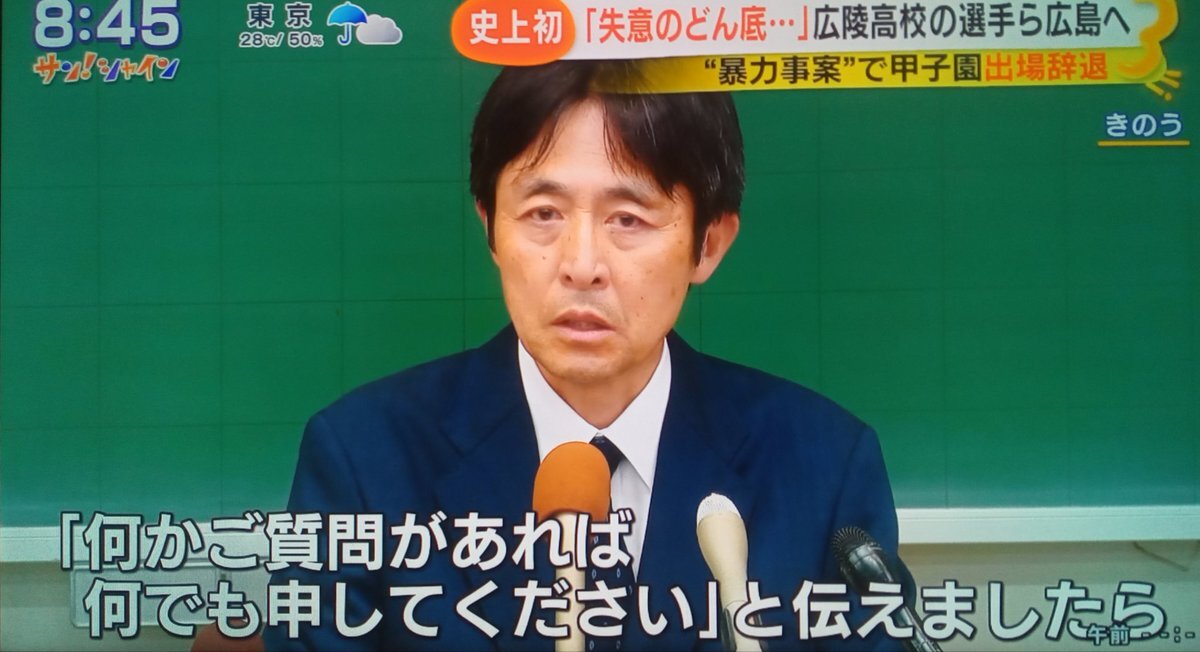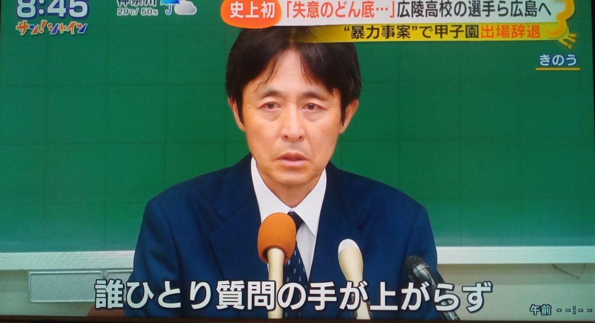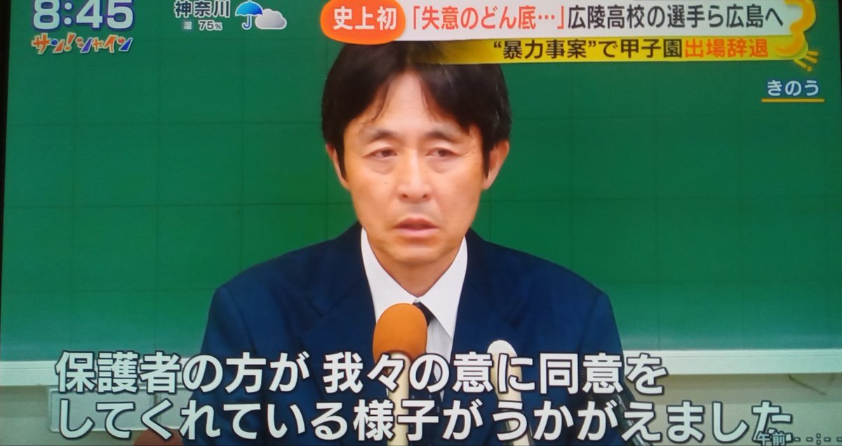 広陵高校 「保護者会では辞退の理由などを説明。質問があれば申し出るよう伝えたところ誰ひとり質問の手が上がらず、堀校長は「保護者の方が同意している様子が伺えたと思います」と話した」 これがどれだけ気持ち悪いかわかっているのかな?