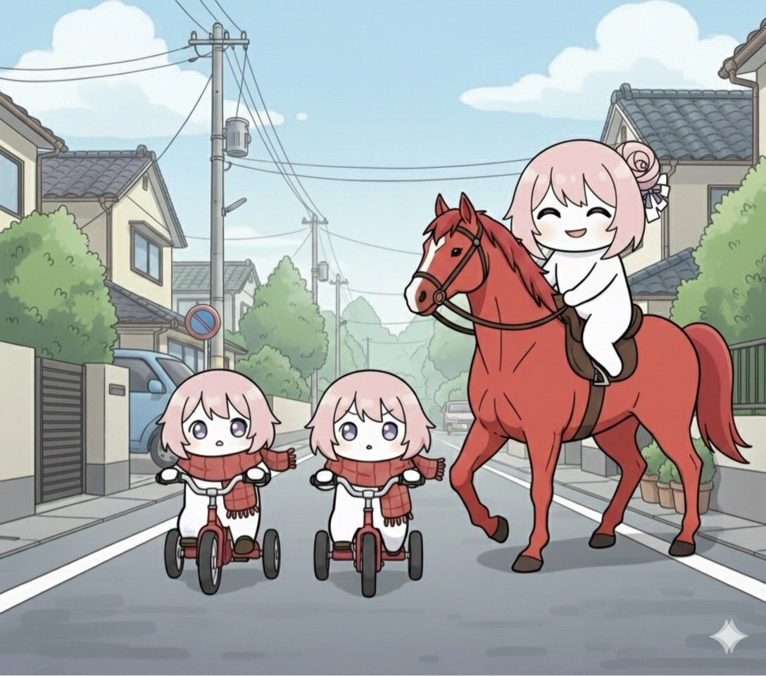 没ネタ画像 子供に「向こう側まで競争しよう。お母さんも一緒に。」って会話を考えた時に生成した画像です。 赤兎馬に乗せてみましたw 子供の「えっ?何それ?」って表情が可愛かったので勿体なかったです。 没理由:勝てる訳ないだろう! pic.x.com/d5baYcBFEs x.com/popnplpl/statu…
