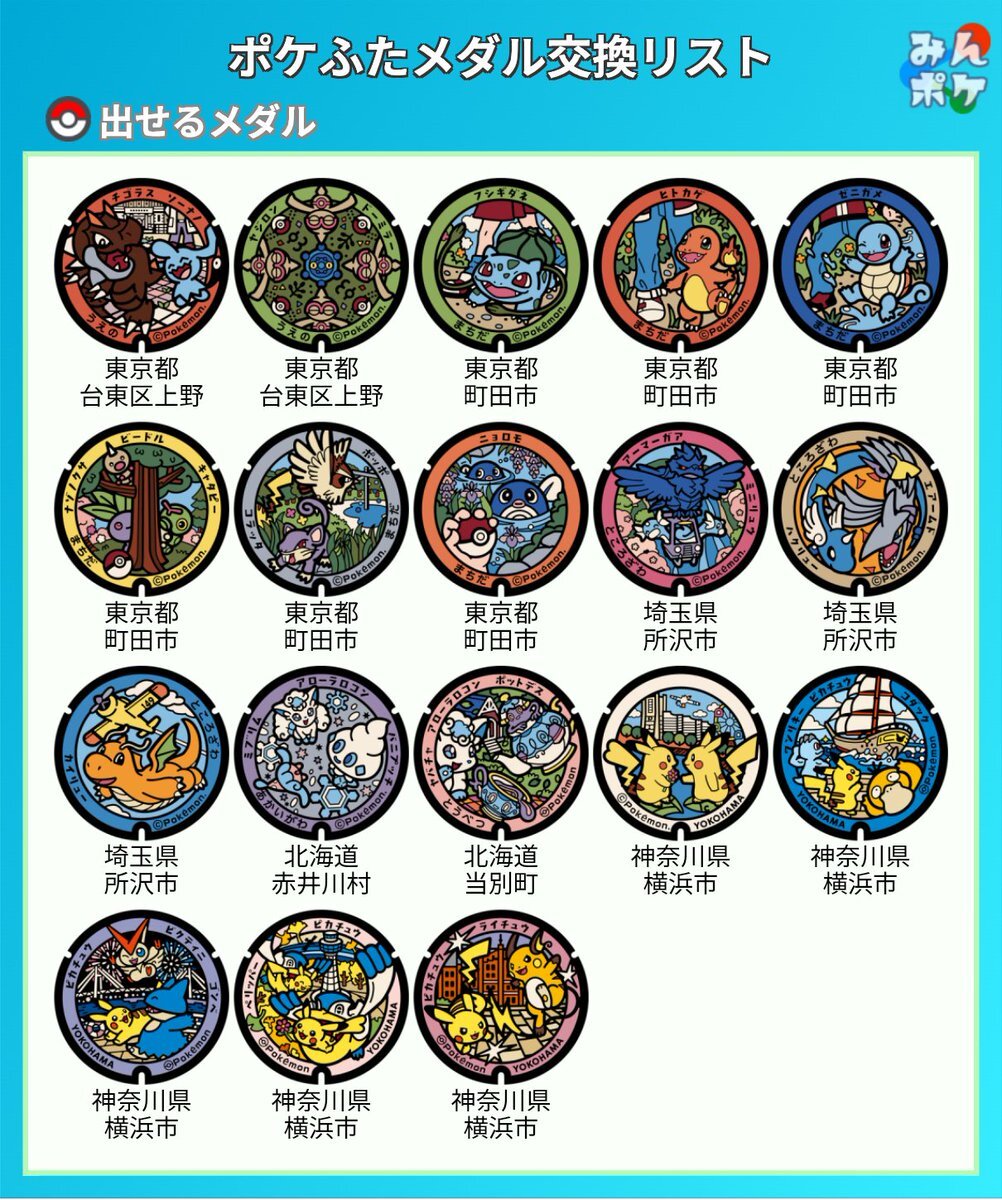 ポケふたメダル交換募集 求:未所持のポケふたメダル(リプに追記) 出:画像のポケふたメダル、出のポケモンセンター、ストアメダル、天文台メダル 北海道と天文台は東海、近畿地方以外のポケふたメダルとの交換でお願いします 組み合わせによってはお断りする場合があります pic.x.com/YSC3kwAVEg