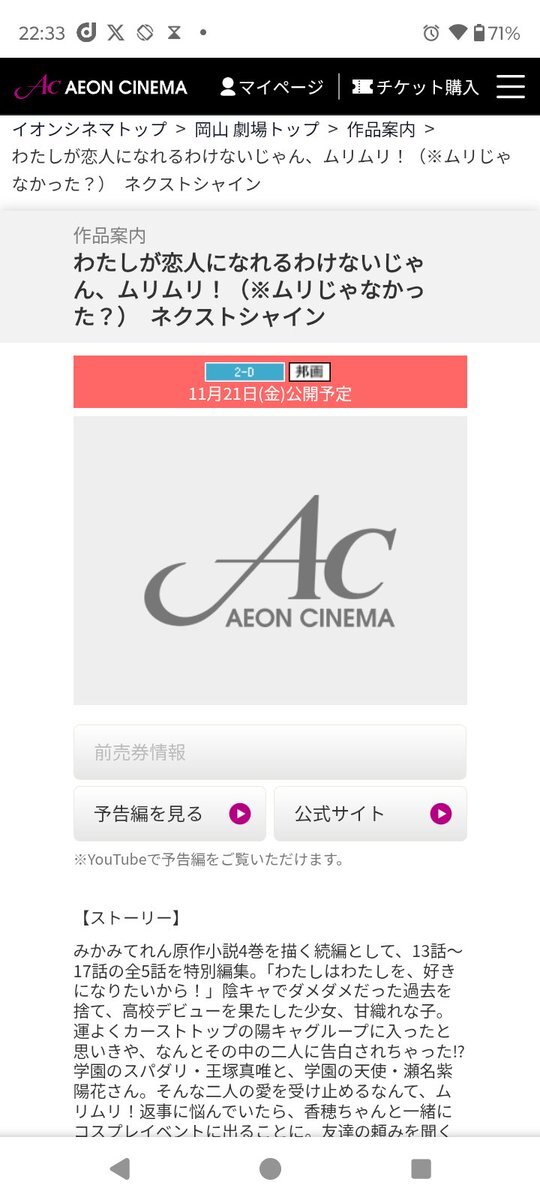 返信先:@Ironace9近畿地方のわたなれへの理解は名古屋以下だった…⁉️いや、名古屋がバルト9の次にわたなれに優しすぎる…⁉️竹嶋先生が公言されてる地元イオンシネマ岡山でも一日1回という世知辛さである。 pic.x.com/pTfkX5qV4f