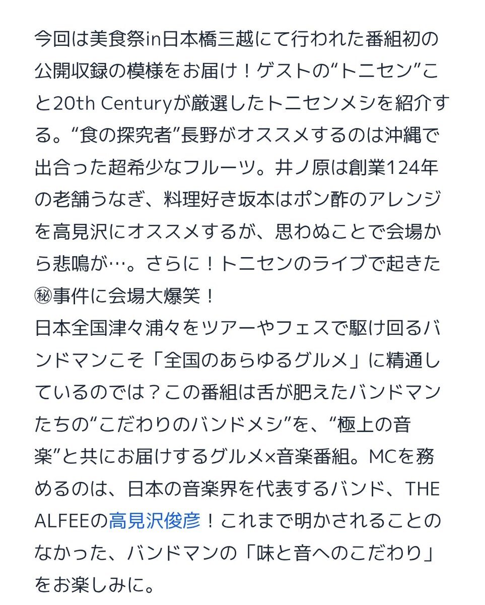 12/5(金)22:30〜 BS朝日『高見沢俊彦の美味しい音楽 美しいメシ』 【ゲスト】#20thCentury #坂本昌行 #長野博 #井ノ原快彦 #トニセン bangumi.org/tv_events/seas… pic.x.com/pHQ51KYv92