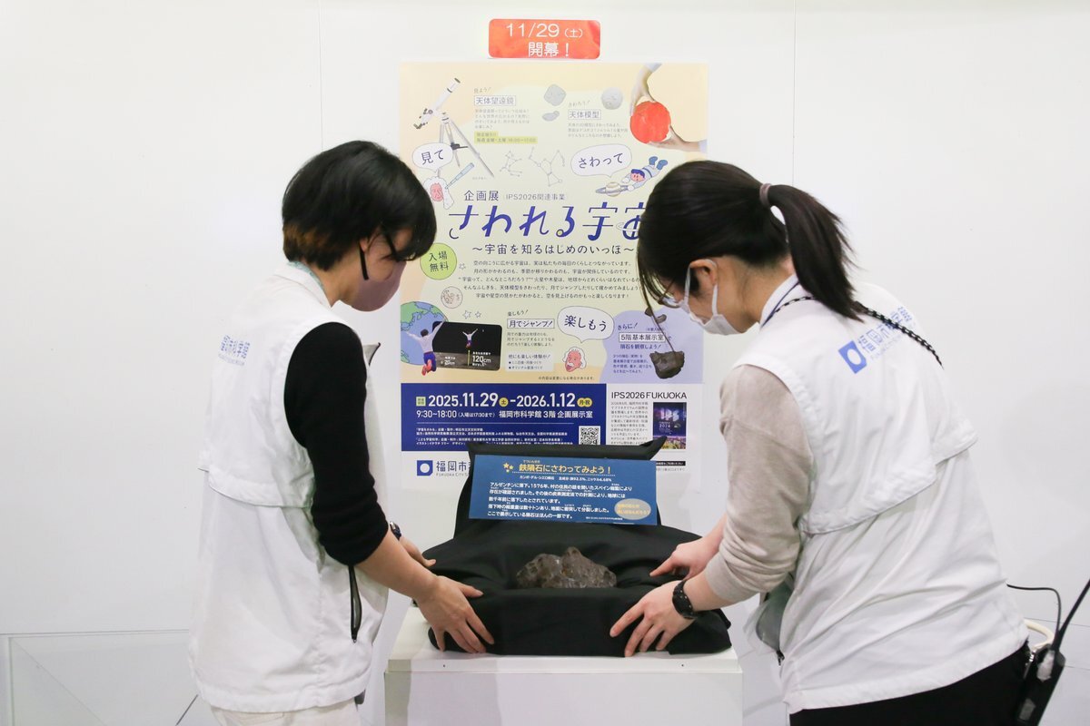 明日からはじまる企画展「#さわれる宇宙 ~宇宙を知るはじめのいっぽ~」(3F企画展示室)にむけて、展示の最終調整中!こちらは5F基本展示室でスタッフが #隕石 を展示している様子(隕石は基本展示室で展示) ぜひ実物の隕石をさわってみてください✨ fukuokacity-kagakukan.jp/sp_exhibition/… #福岡市科学館 pic.x.com/O1KxLaTVJb