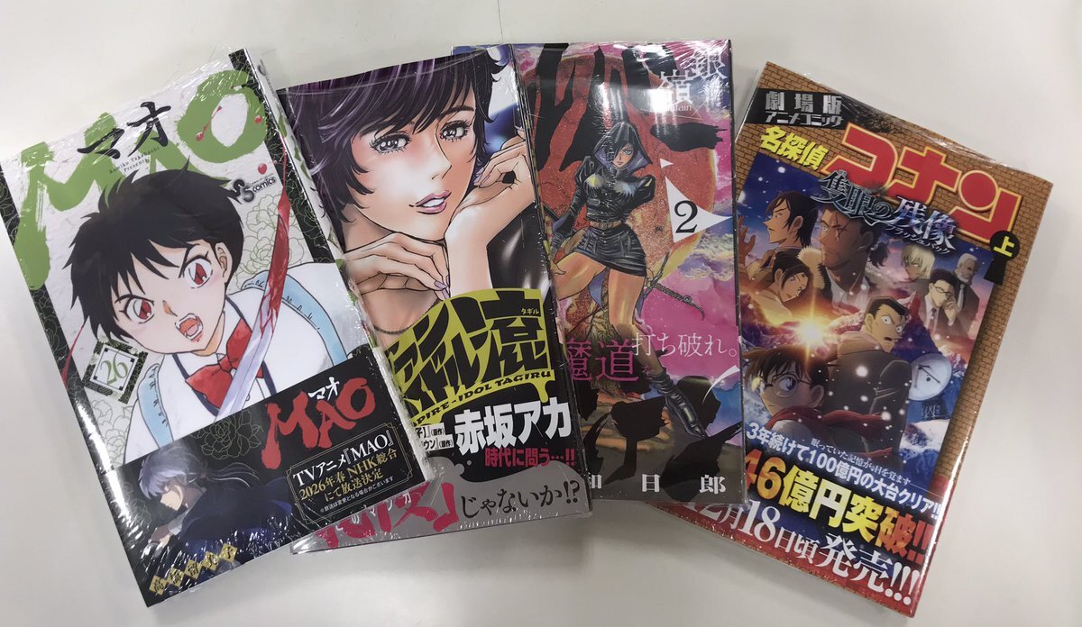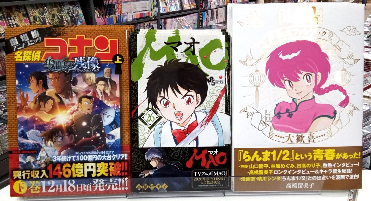 【11/20 コミック新刊のご案内】 劇場版アニメコミック #名探偵コナン #隻眼の残像 ㊤ •MAOマオ㉖ •らんま1/2公式ファンブック大歓喜 他多数入荷しました! #小学館 #青山剛昌 先生 #高橋留美子 先生 pic.x.com/Mbjw8AqkgL