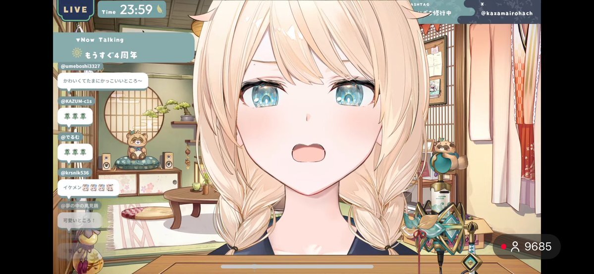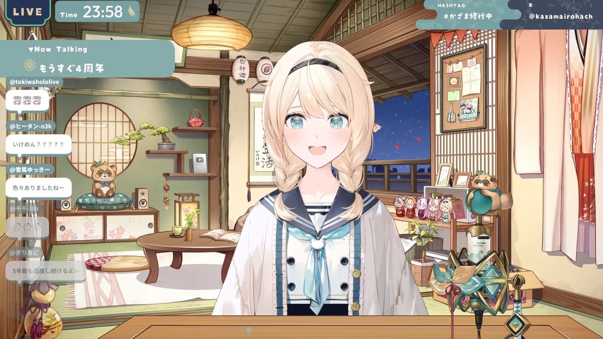#風真いろは4周年 配信お疲れ様でした 頑張ってウインクしたり圧を掛けたりかわいくてたすかる お手紙には胸が熱くなりましたし、『生きたいと思えば何とかなる、ソースは風真いろは』という言葉を胸に刻んで生きていこうと思います 明日の周年記念地獄配信も楽しみにしてます🥰🍷 #かざま修行中 pic.x.com/wh6DdXDG8X