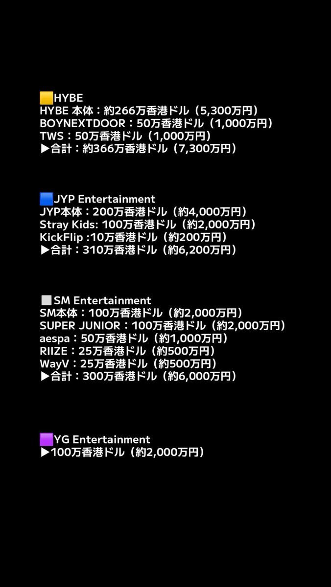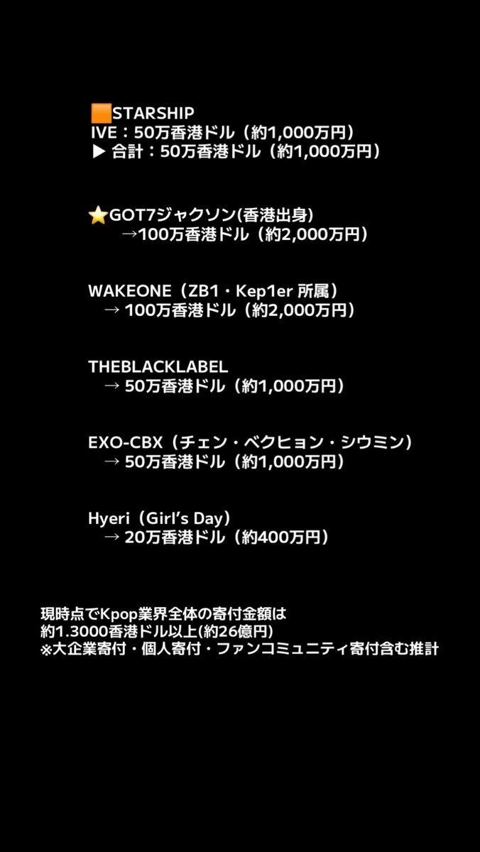 香港火災で寄付した事務所、個人まとめ HYBEが一強 こんだけ寄付金出せるって事はやっぱり相当稼いでるんだね Got7のジャクソンも個人で100万香港ドル(約2000万円)も本当に凄い 香港出身だもんね 被害に遭われた方が、早く支援が受けられて元の生活に戻れます様に😔 pic.x.com/GC88I46fN9