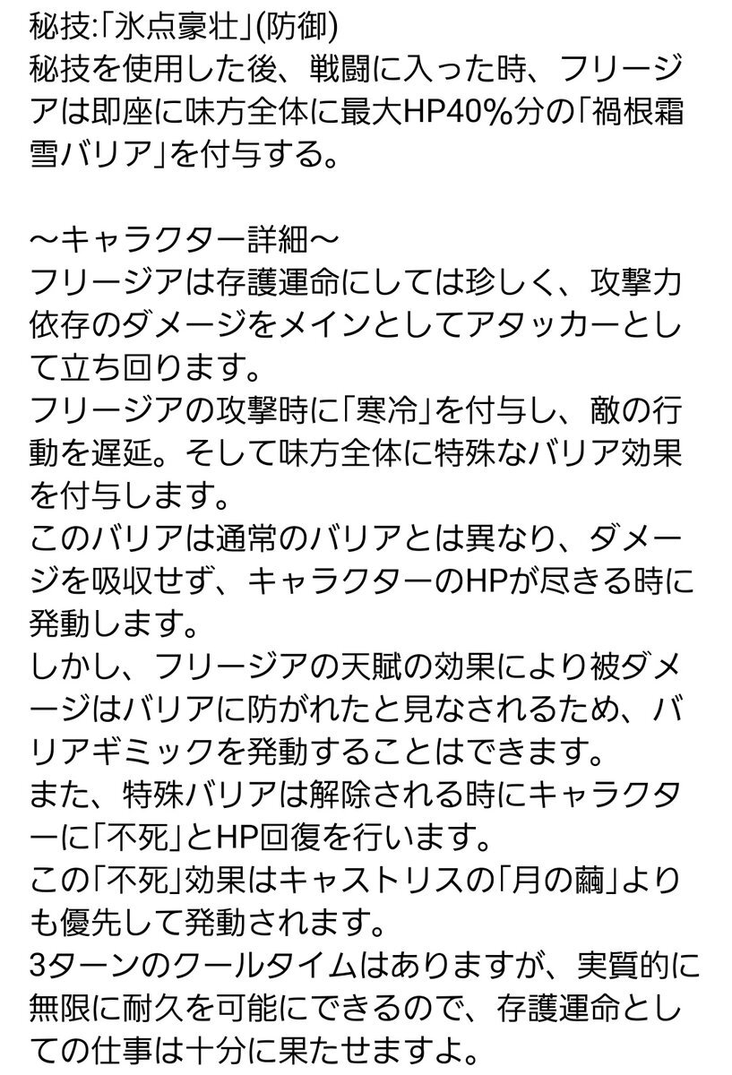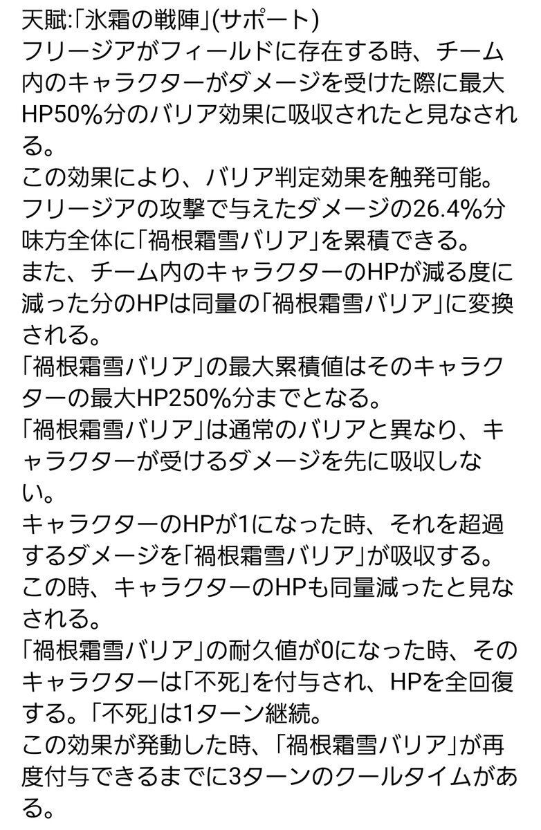 返信先:@Theo_1205Lelo 最近の存護といえばアベンチュリンや丹恒・騰荒のバリア無限回転が主流で、しかも味方に攻撃バフを配るのもセットですよね。 なんなら丹恒・騰荒は回復までできちゃうからね() フリージアさんはアタッカーと行動束縛に振り切ることで互換性を出しました。 性能はぶっ壊れですが← (2/2) pic.x.com/bVPoIpY2iE