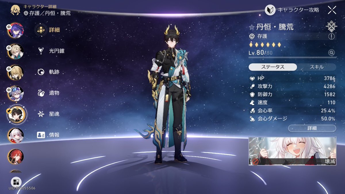 〈崩壊:スターレイル〉 丹恒・騰荒 Lv.80 到達 (*´ω`*) 丹恒 80レベ (っ*^ω^*c) 19人目のLv.80 ( ˘ω˘ ) pic.x.com/78OwvzXvOb