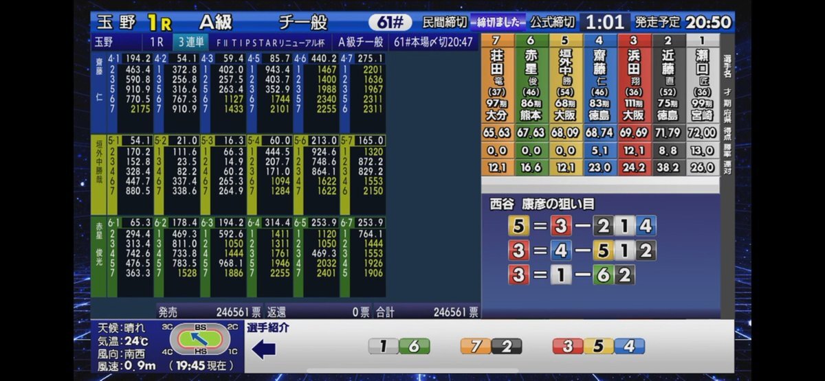 #玉野競輪 ↖️ 0、9m 晴れ 19:45 1R 2ー5-7 2万車券 差し目のハサミ車券 何故,補充②のコメントがないのに ←❸⑤②④ の並び予想立てれるんでしょうね💦 選手紹介は,←❼②・❸⑤④ でした pic.x.com/PhI6sUbhbk