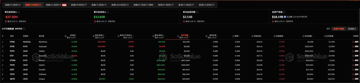 以太坊现货ETF昨日净流出3735.18万美元,连续七日净流出 据SoSoValue数据,以太坊现货ETF昨日(11月19日)总净流出3735.18万美元,连续第七日录得净流出。截至目前,以太坊现货ETF总资产净值为181.94亿美元,占以太坊总市值5.12%,历史累计净流入达128.38亿美元。