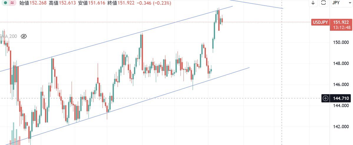 上がらなくなったから欧州が売り仕掛けるために高値更新してそこから新規売りして上値重くしてる気がするな…もしかしたら窓埋めか150円われ、もしくは148円台まで狙ってる初動なのかもしれない