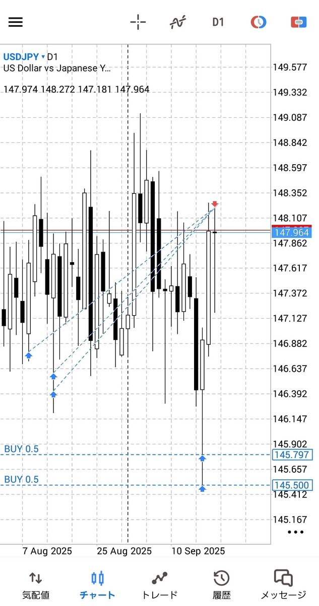 この位置からスイングは厳しいですからね。 147-148円台でポジション持っていないなら ひたすら反発10-30pipsを積み増していくしかないですからね。 波によっては第五波なのですから、、、 それが終われば大きな調整もあるからね。 波動の位置によって長中短のポジ構築は異なります。