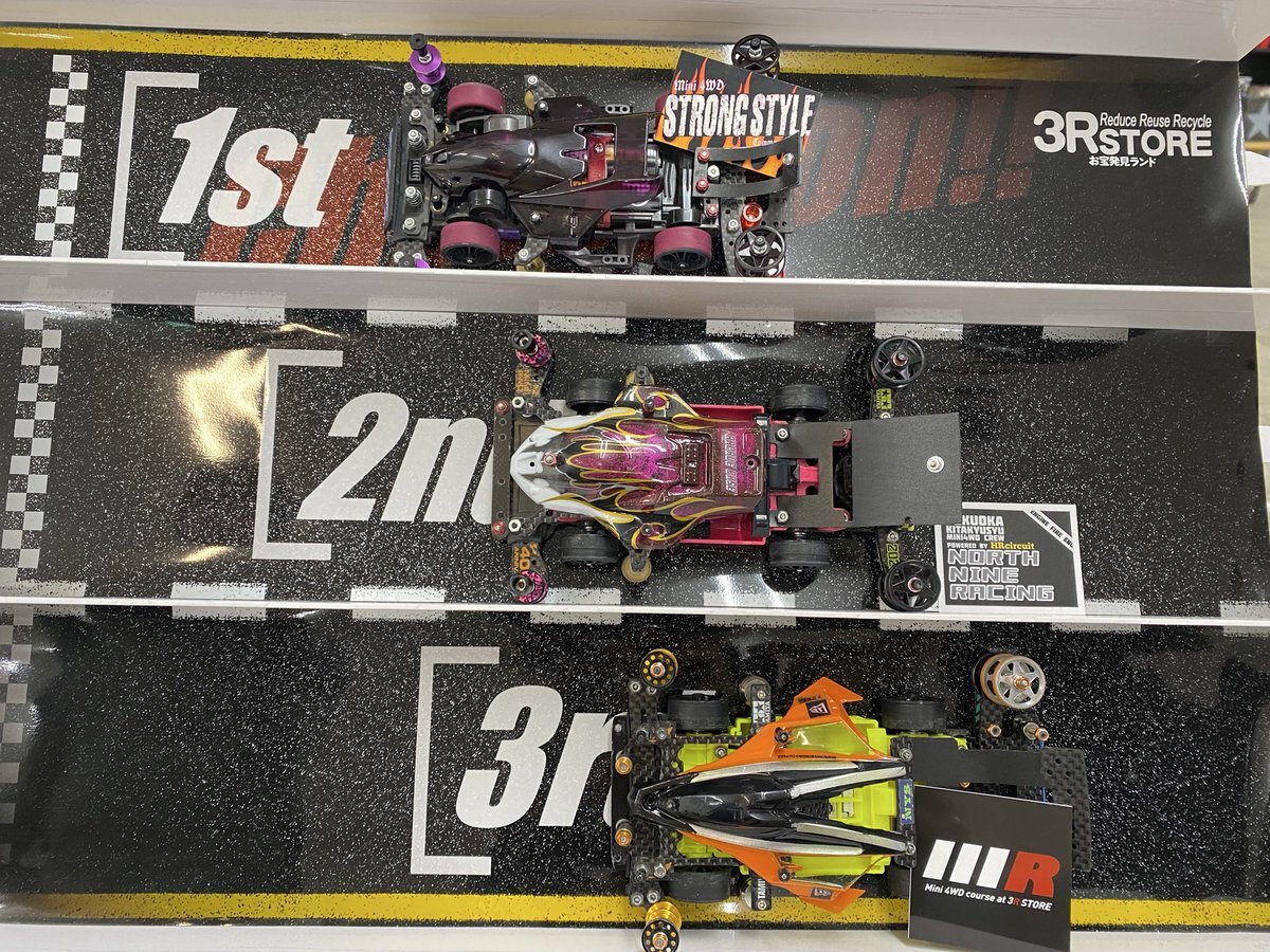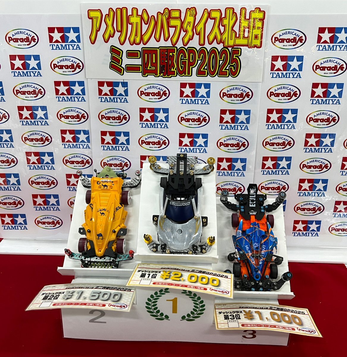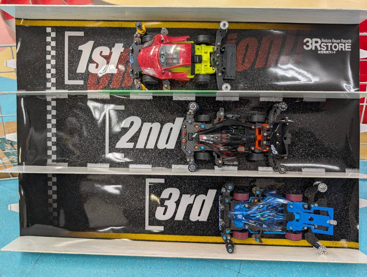 アメパラ北上 ミニ四駆GP2025 ナイトレース 🥇1位:ムラカミ選手 🥈2位:サトウタカノリ選手 🥉3位:ユースケ選手 おめでとうございます🎉㊗️ #mini4wd