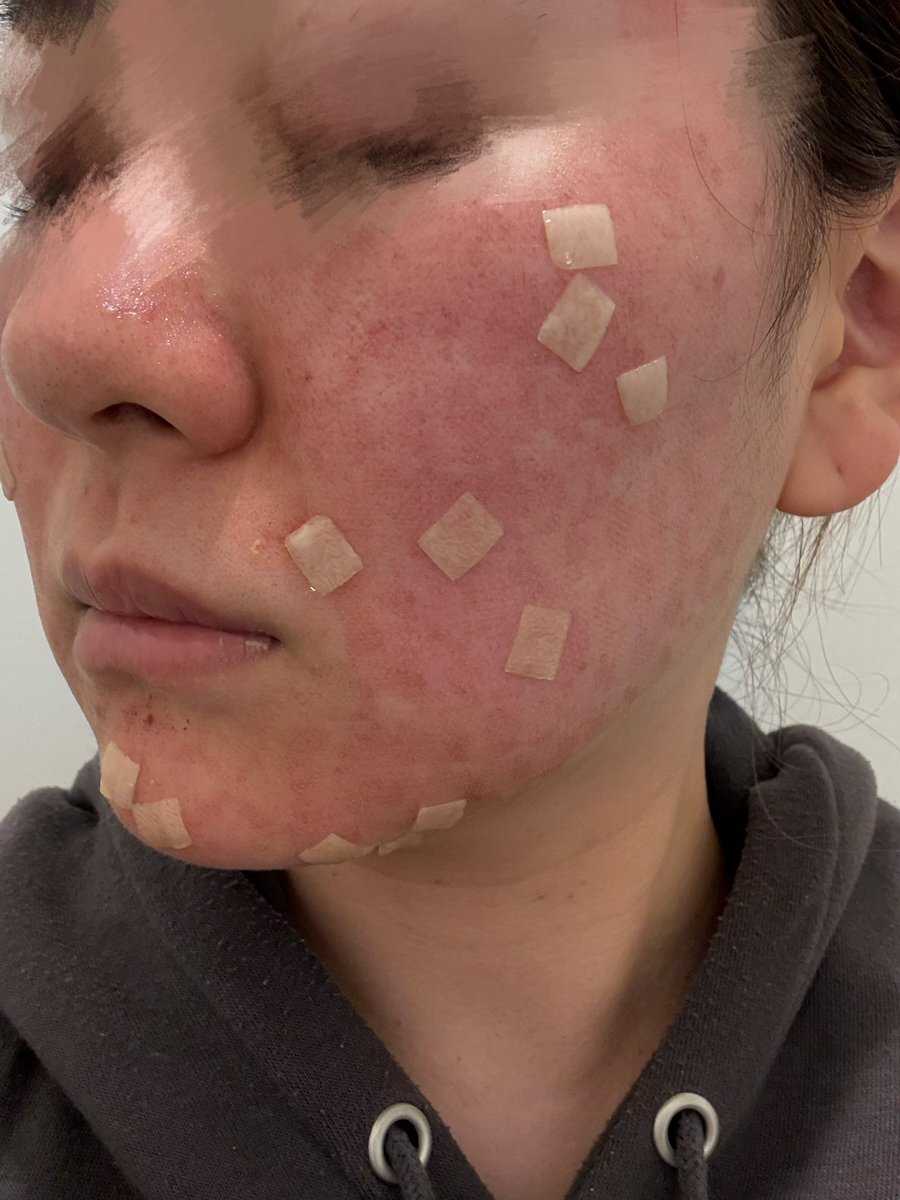 📝施術後の経過👀 ・施術直後〜2時間半から3時間まで: 顔が火傷状態🔥特に頬がジンジンひりひりする⚡️2時間後ぐらいには落ち着くけど痛い😇 ・施術後3時間後〜48時間: 48時間は顔に水がかからないようにしないといけないので、強制風呂キャン⚡️ 顔は相変わらず赤いけど、痛さなどは全く無し🙆‍♀️ pic.x.com/mkPmbKyoKH
