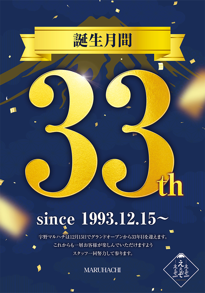 明日から宇野マルハチ 🔥33周年突入です🔥 お客様に喜んでいただけるよう これからも楽しんでいただける 店づくりをしていきます 明日より誕生月間です😁 ぜひお越しください pic.x.com/rgBbNxO2mu