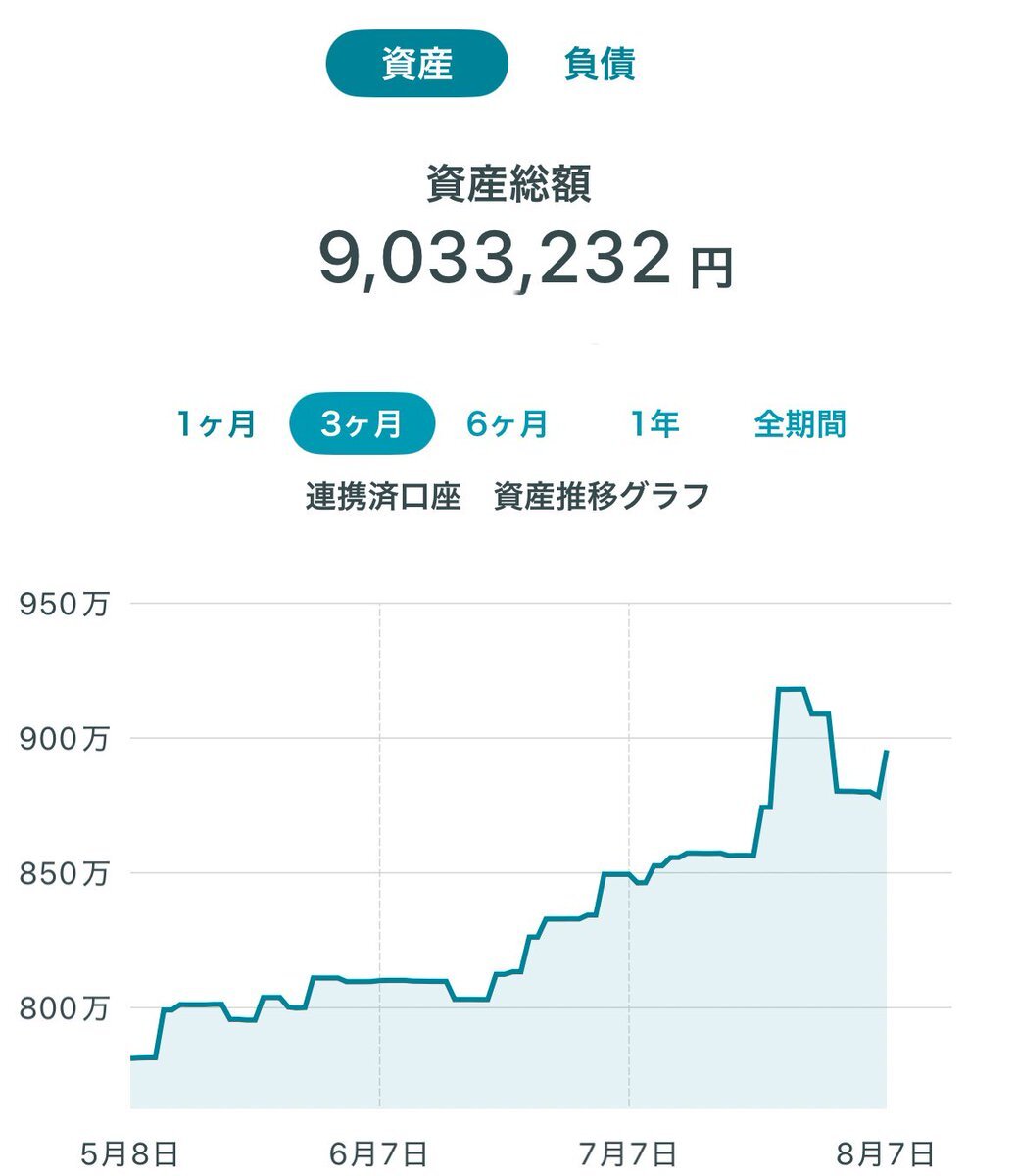 \( *°ω°* )/ヤッタ-!! ついにお小遣い資産が900万円突破🎉 飲み代&昼ごはん代込みで月3万円の 赤ちゃん並みの入金力で達成できたのはあつい🔥 なかなか入金できない人も一緒にがんばろー😆✨ 2023年4月 500万円突破㊗️ 2023年7月 600万円突破🎉 2024年3月 700万円突破😆 2024年12月 800万円突破✌️