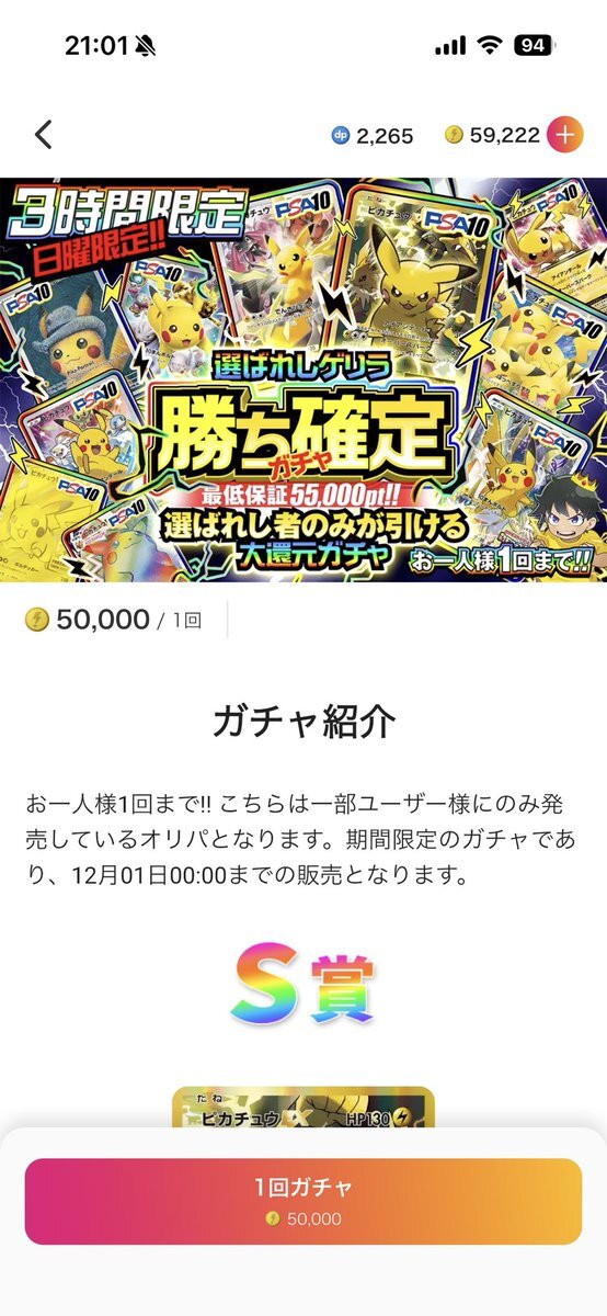 え?ポケカポイントガチャの為に10連したらA賞当たった! 290円で50,000越えは超爆アド! どうしよう😅ポイントにすべきか発送すべきか😅 ToLOVEるなら発送してた😅 #DOPA pic.x.com/O9W1dUrTK8