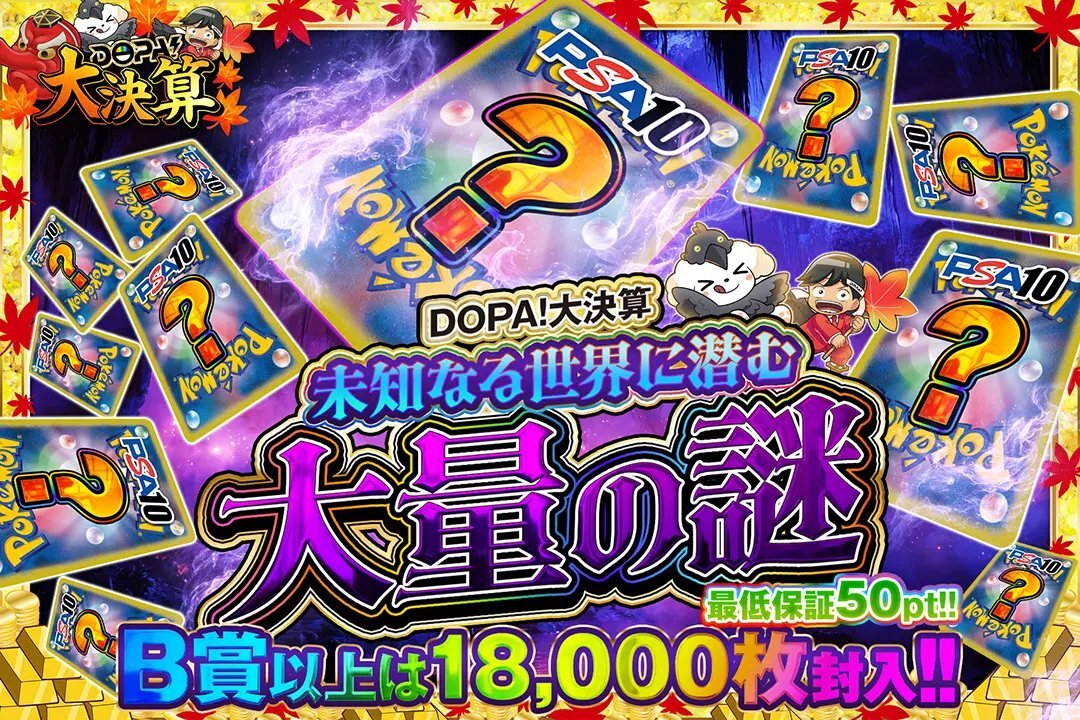 🔥DOPA!大決算🔥 ⁉️B賞以上は18,000枚封入!! 🔥未知なる世界に潜む大量の謎🔥 販売開始(bit.ly/4g5hRA5) フォロー&RP&いいねで 1名様に2,000ptプレゼント🎁 〆切 24時 pic.x.com/MUEkqAn6Lm