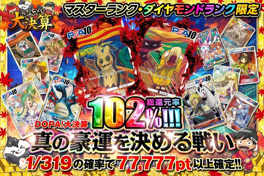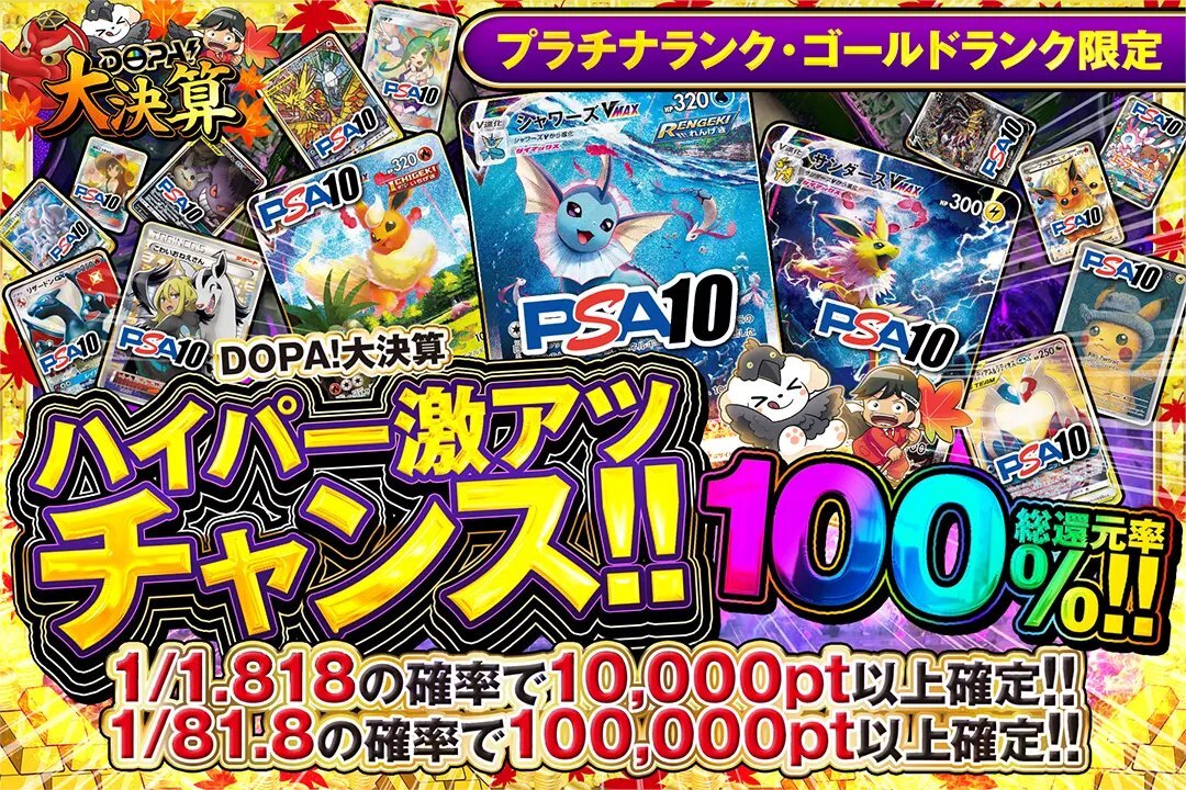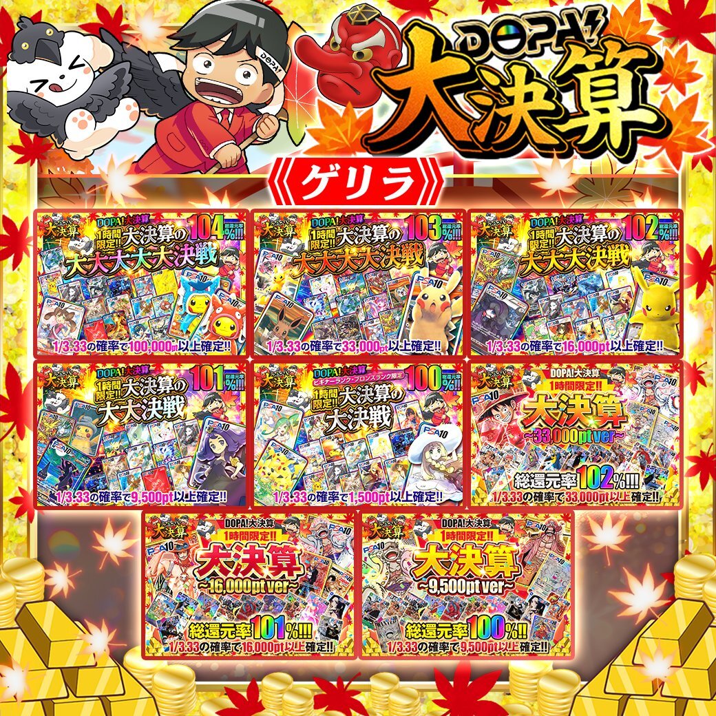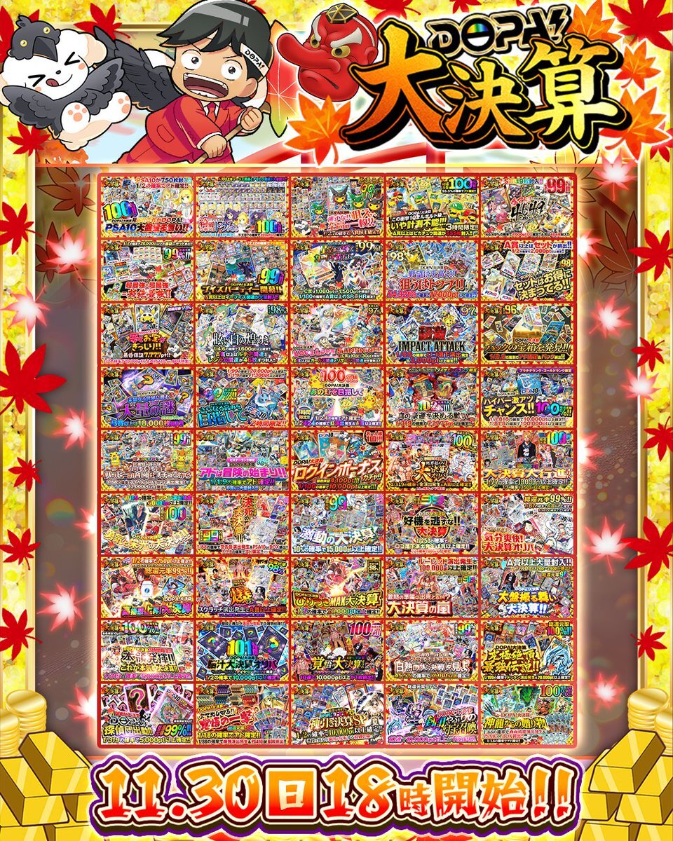 🔥🪙DOPA!大決算 予告🪙🔥 爆裂!!大決算!!💥 🍁総還元率は最高で1⃣0⃣0⃣%超え‼️ ⏰18時より順次発売開始!!⏰ フォロー&RP&いいねで 1名様に8,000pt🎁 〆切 24時 ①11月の当選報告(到着品も可) or ②1番欲しいカードを画像付きでリプ!! ①or②で当選確率🆙 pic.x.com/3RabpSJREm
