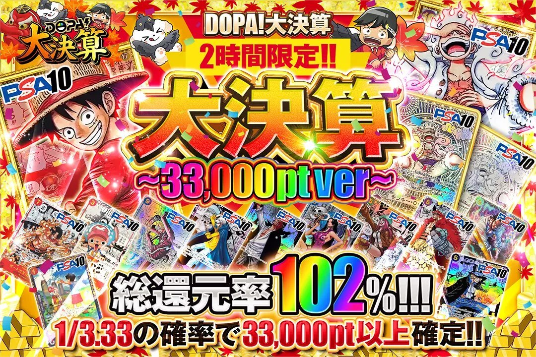 🍁DOPA!大決算🍁 😃2時間限定!! 😃総還元率102%!! 😃1/3.33の確率で33,000pt以上確定!! 🍁大決算 ~33,000pt ver~🍁 販売開始(bit.ly/4g5hRA5) フォロー&RP&いいねで 1名様に2,000ptプレゼント🎁 〆切 24時 pic.x.com/6FBvoiDaeD