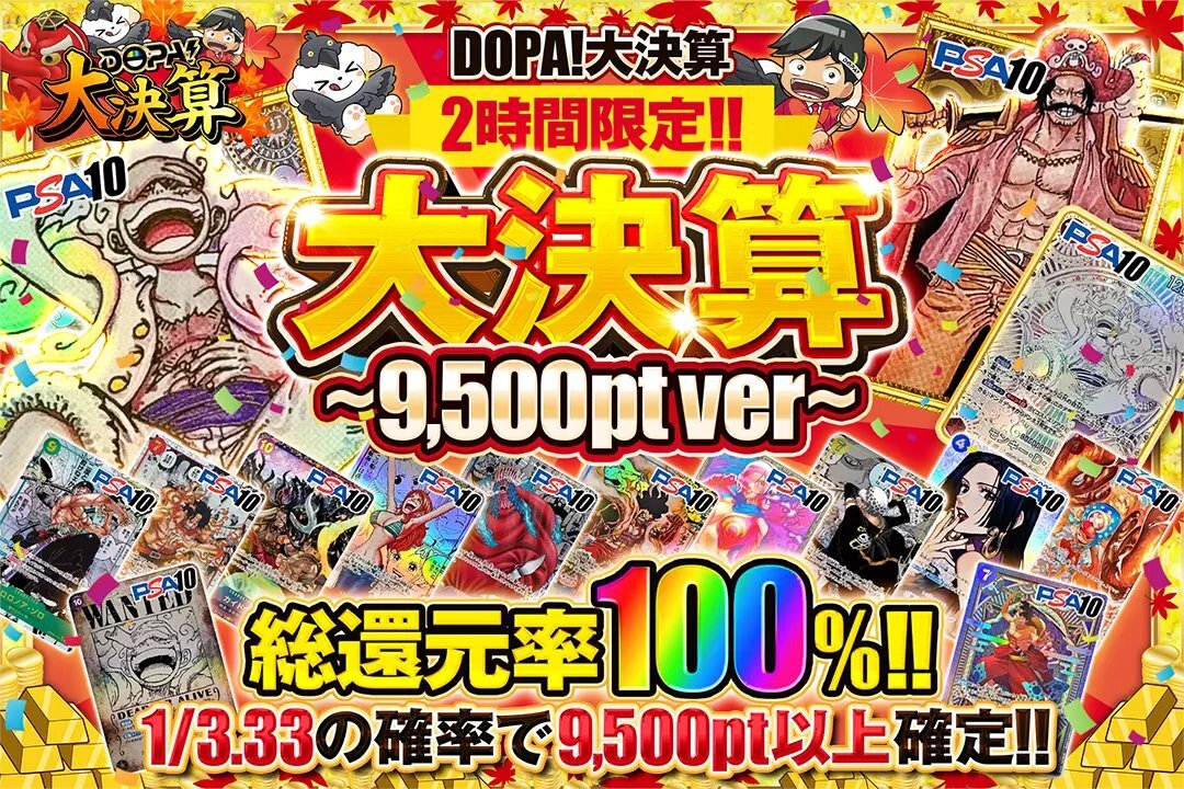 🍁DOPA!大決算🍁 🎪2時間限定!! 🎪総還元率100%!! 🎪1/3.33の確率で9,500pt以上確定!! 🍁大決算 ~9,500pt ver~🍁 販売開始(bit.ly/4g5hRA5) フォロー&RP&いいねで 1名様に2,000ptプレゼント🎁 〆切 24時 pic.x.com/iuBSX6DW1m