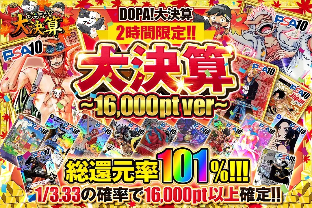 🍁DOPA!大決算🍁 🏳️🌈2時間限定!! 🏳️🌈総還元率101%!! 🏳️🌈1/3.33の確率で16,000pt以上確定!! 🍁大決算 ~16,000pt ver~🍁 販売開始(bit.ly/4g5hRA5) フォロー&RP&いいねで 1名様に2,000ptプレゼント🎁 〆切 24時 pic.x.com/muqpSCrNVj