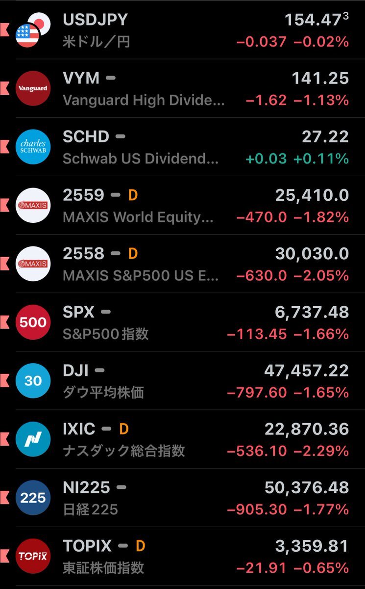 2/2|【昨日のあめりかさん】 ・政府機関は再開決定=「材料出尽くし」で売り ・AI関連・半導体(エヌビディアなど)に売り+バブル懸念 ・FRB高官発言で、利下げ期待さがる ・為替/長期金利:ヨコ ねこ「ドカッと下げの日も、積立はいつもどおりでOK🐾」 ヨシ!見守ろう… #米国株 #投資初心者