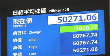14日、日経平均株価は大幅反落し、前日比の下げ幅は一時、1,000円を超えました‼️終値は前日比905円安の50,312円でした。FRB高官から米国の追加利下げに関し慎重な発言が相次ぎ、リスク回避の売りが優勢となった米国株の影響を受けました。 pic.x.com/x3R8s6WEpU