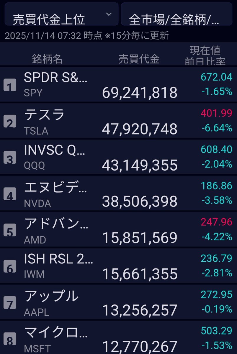 13日米国市場は、AIバブル懸念でハイテクが売られたほか、FRB高官のタカ発言で利下げ期待が後退し、3指数下落しました。 NYダウ 47457.22 ( -797.60 ) S&P500 6737.49 ( -113.43 ) NASDAQ 22870.35 ( -536.10 ) 米10年債利回り4.122 ( +0.051 ) s.kabutan.jp/news/n20251114… #kabutan #株探
