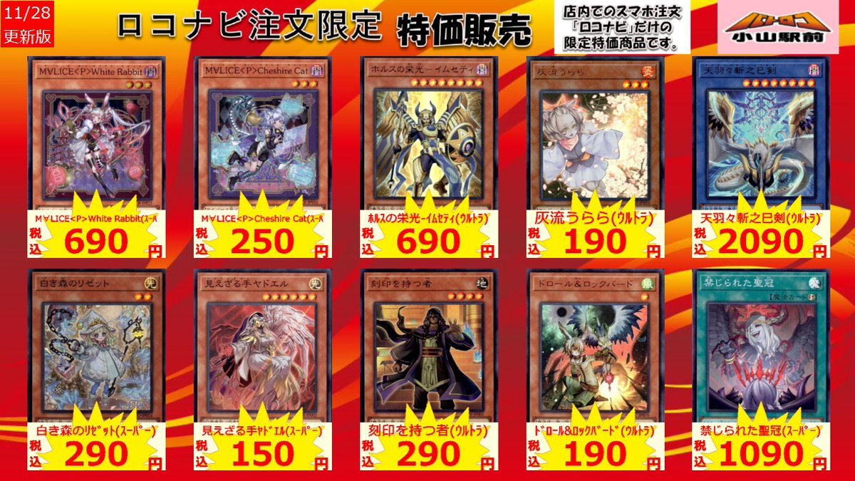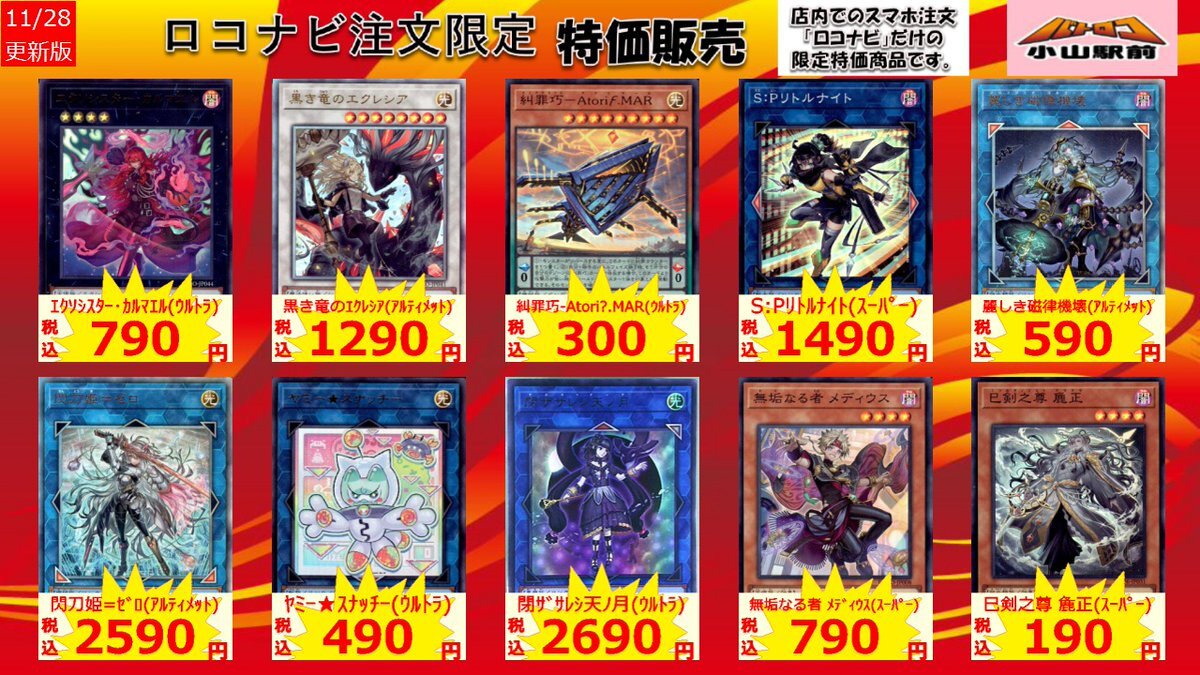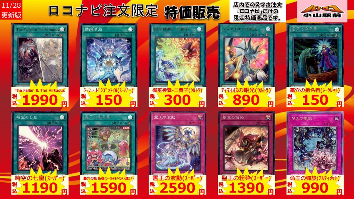 【遊戯王 特価情報】 ロコナビ限定特価です ご来店お待ちしております♪ 閉ザサレシ天ノ月(ウルトラ) ¥2,690 天羽々斬之巳剣(ウルトラ) ¥2,090 The Fallen & The Virtuous(ウルトラ)(CH01-JP019) ¥1,990 #オヤロコ #遊戯王 pic.x.com/XQ7STjfiAx