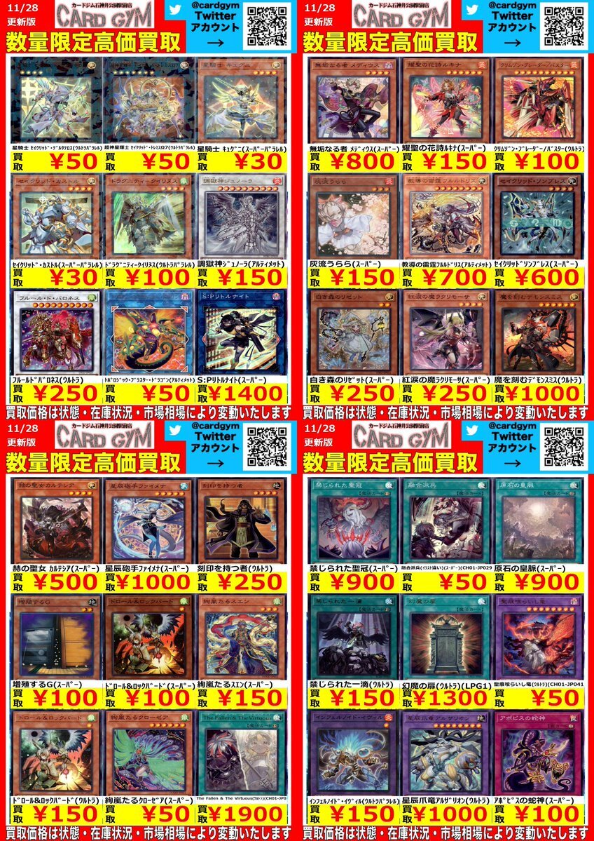 #遊戯王 #高価買取 11/27 更新版!! 幻層の守護者アルマデス(スーパー) ¥1800 赫の聖女 カルテシア(スーパー) ¥500 セイクリッドソンブレス(スーパー) ¥700 結晶魔術 光の涙(スーパー) ¥600 幻魔の扉(ウルトラ)(LPG1) ¥1200 The Fallen & The pic.x.com/Bx4C15Zom6