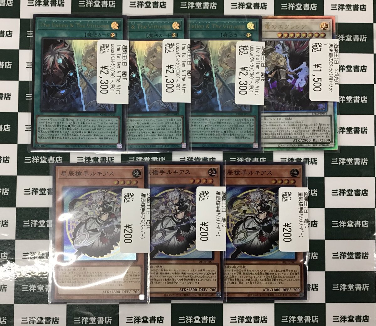 #遊戯王 こちら買取させていただきました☺ ・The Fallen & The Virtuous(ウルトラ) ・黒き竜のエクレシア(アルティメット) ・星辰槍手ルキアス(スーパー) ご来店心よりお待ちしております‼ #三洋堂トレカ館 #菰野 pic.x.com/kIBqnyegwS