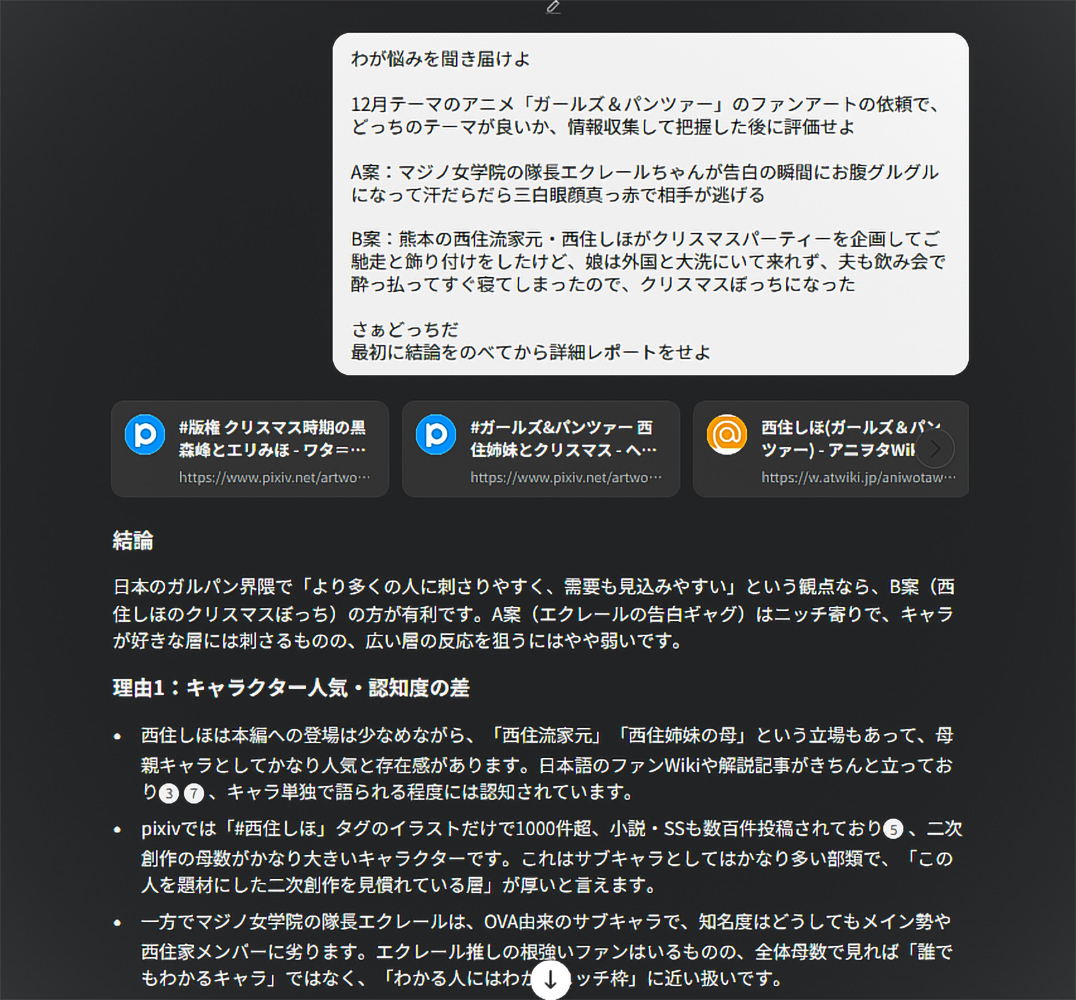 最新のGPT 5.1推論 WEB調査あり によれば 西住しほのクリスマスぼっち にしろらしいです(^^) pic.x.com/jgPb5edZV6 x.com/all_gray_ue3/s…