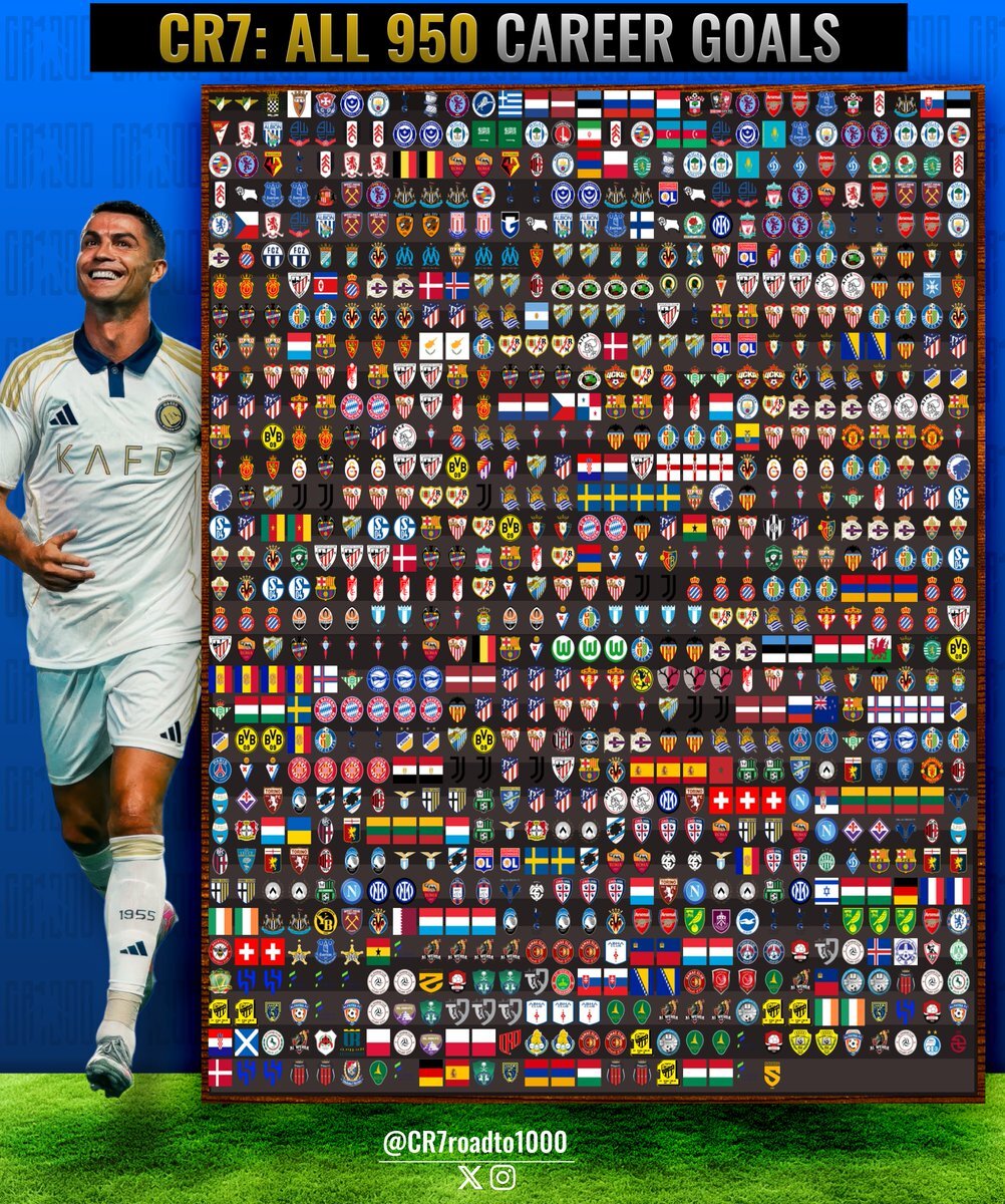 🚨HISTORICAL🚨 Cristiano Ronaldo becomes the first player to OFFICIALLY REACH 950 career goals ! 🐐🥇 Let the countdown to the 1000 continue ! 🤯
