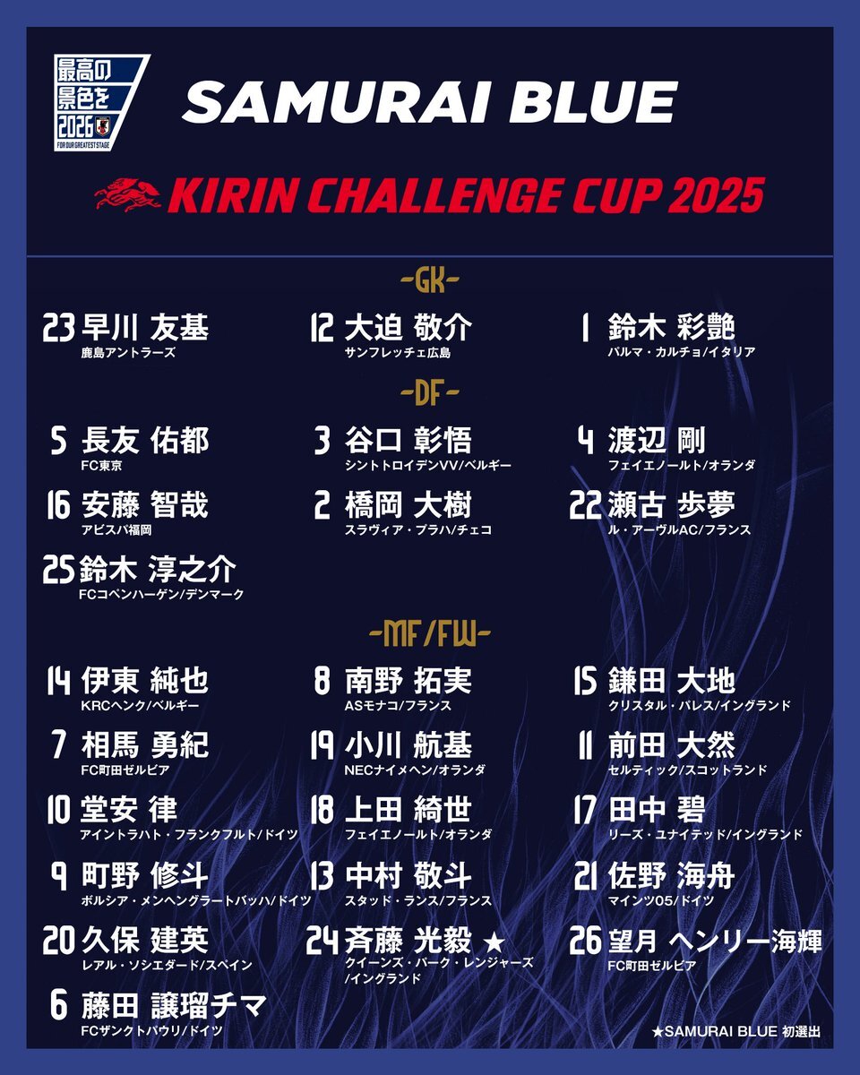 日本代表11月メンバー発表!! 小久保・北野・後藤の3選手初招集、遠藤航ら復帰 web.gekisaka.jp/news/japan/det… #ゲキサカ #daihyo #日本代表 #サッカー日本代表 #W杯 #ワールドカップ #WorldCup #FIFAWC2026 #FIFAWorldCup