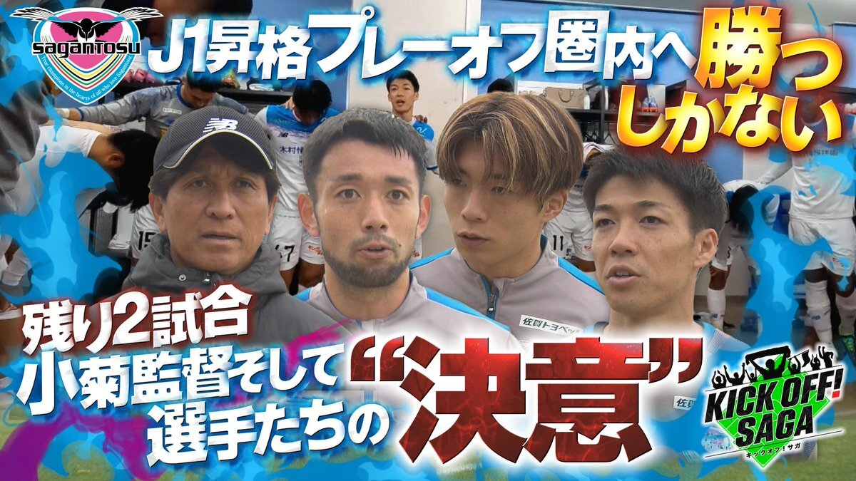 あす10時25分~ #キックオフサガ⚽️ 前節の富山戦での敗戦を受け、J1昇格プレーオフ圏内に進める可能性は、上位チームの結果次第と、残り2試合勝つしかないという崖っぷちの状況に・・・ 今回は監督、選手の「決意の声」をお届けします! #サガン鳥栖 pic.x.com/oZj62tt9iu