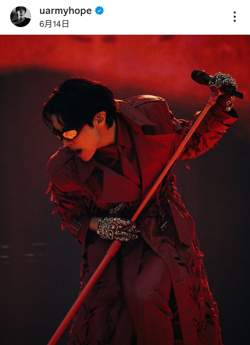 「Jack In The Box」の収録曲を披露する赤衣装の最初のセクション。振り上げる手も踏み出す1歩も本当に何一つ隙がない。ジェスチャーと歌声だけでここまで魅せられる人はそう多くはないと思う。 j-hope=ダンスと思っている方に踊らないホソクさんの超絶格好いい姿をぜひ見て欲しい #jhope映画観てきた pic.x.com/eZ7w5n11h9