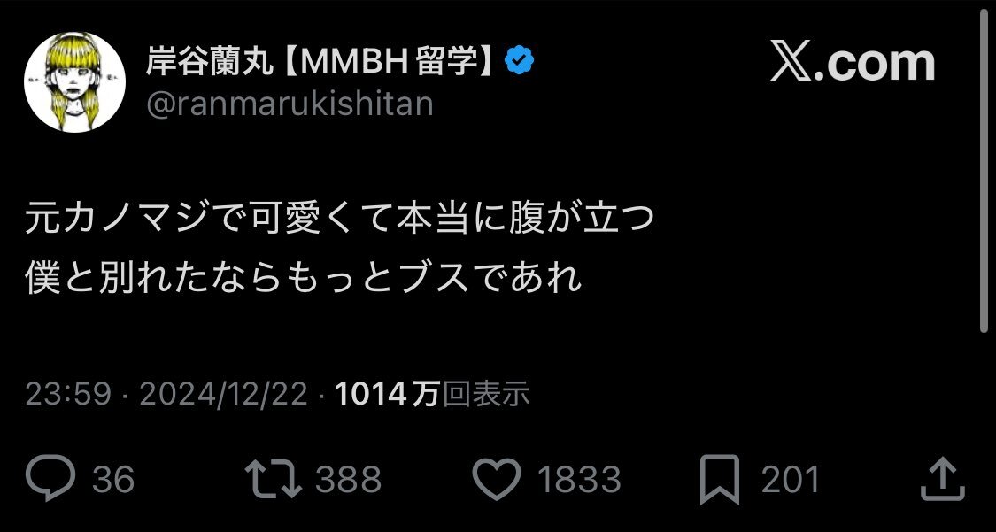 いやほんとこれ。ややミソジニー思考垂れ流してて危険だと思うし、最近メディア露出増えてて怖い。 元カノ関連の発言キショくて、リベンジポルノっぽさもあるし、やっぱどんどん偏っていってるよね… x.com/cmydnzh/status…