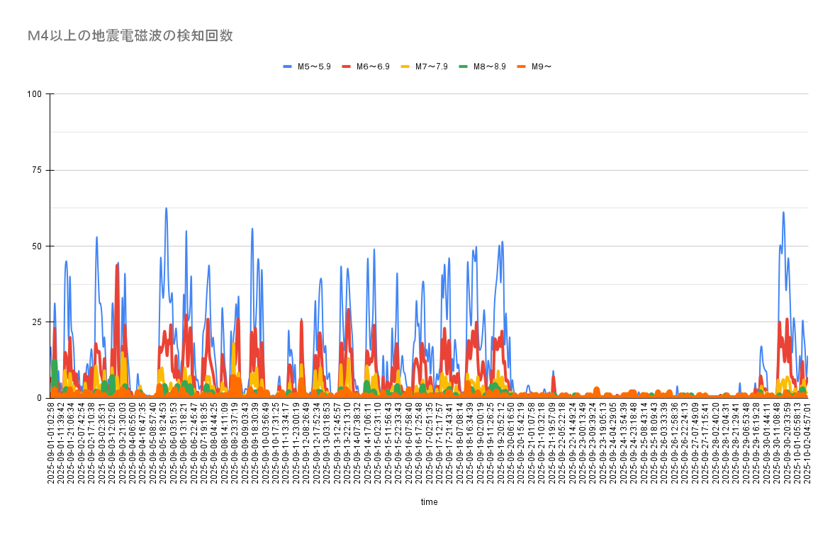 現在のところグラフ値に大きな反応は見られません。 09月30日 23時00分頃 フィリピン付近M7.0#地震予測  #地震電磁波 #マグニチュード #earthquake #earthquake pic.x.com/HpbmYANg0W