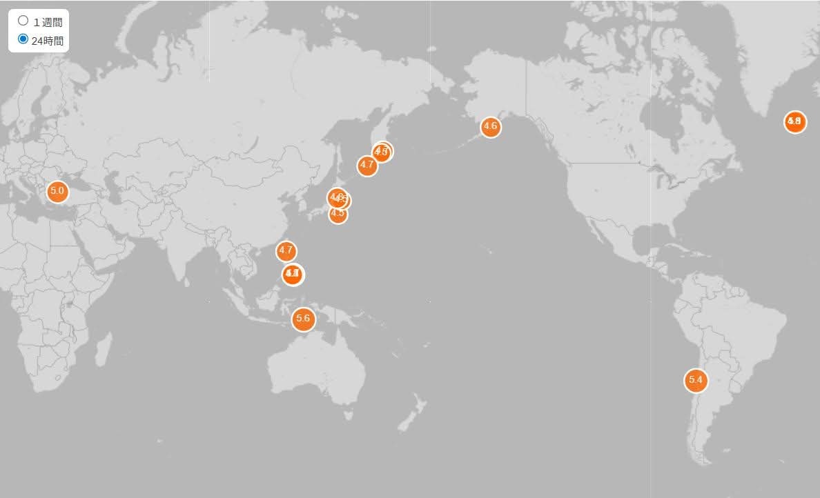 世界の地震予測 (M 7.0以上M 8.2以下) 次の地震は下記のいずれかと考えられます。 M7.0の場合 2026/1/30前後 M7.1  2026/1/2前後 M7.2 2025/12/26前後 M7.3 2025/11/24前後 M7.4 2025/10/27前後 M7.5 2025/11/29前後 M7.6 2026/1/22前後 M7.9 2025/12/14前後