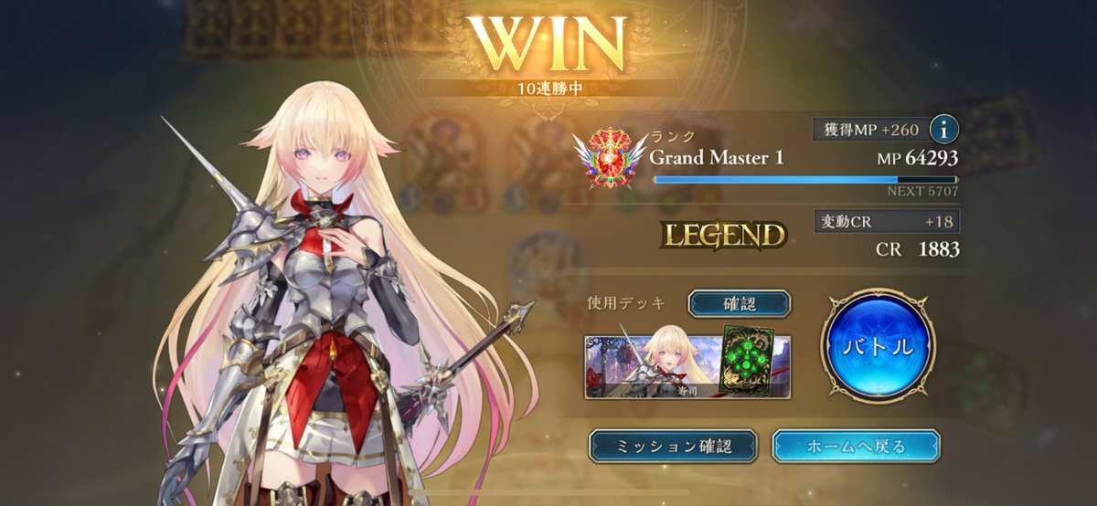ロイヤル10連勝でレジェンド! 色々構築試してたけどシンプルイズベストだわ