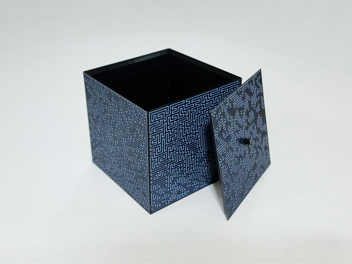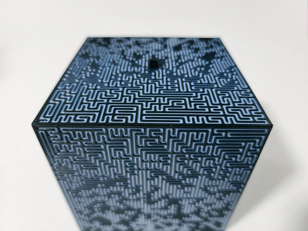 3Dデータコンテストの景品としてSK本舗さん(@3dprinter_SK)に頂いた「NIHON COLOR FILAMENT」の群青色を使って、 全面に一筆書きパターンをあしらった小箱を製作しました! 少し彩度低めの綺麗な青と黒の組み合わせがかなり良い感じ! pic.x.com/15IcDwJWAJ