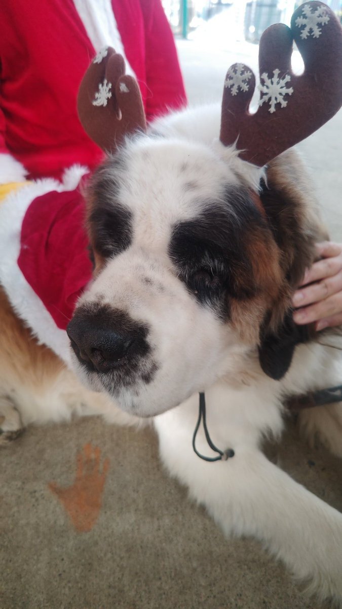 トナカイだけどサンタさんのおじいちゃんのお出迎え。 〜グラムの季節になってきました〜 #東北サファリパーク #セントバーナード #グラム #クリスマス仕様 #Sお姉さん pic.x.com/8WGw3JirTh