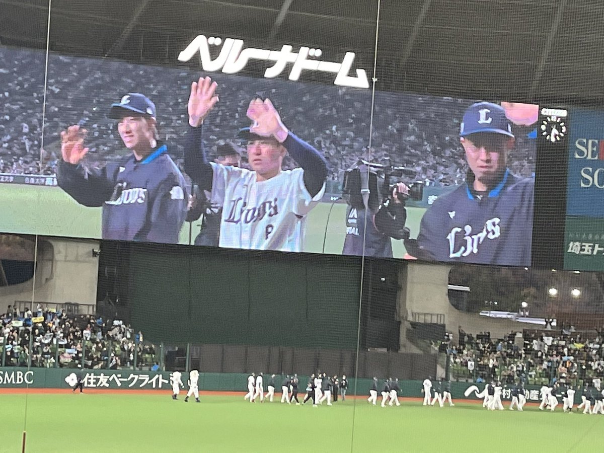 場内一周してる時の写真の続きです…☺️✨!!おかわりさん、聖弥くん、大翔くん、外崎さん、そしてメジャー挑戦の今井くんと光成さんが映っていたので、個人的に最高でした…☺️✨!! #中村剛也 #渡部聖弥 #齋藤大翔 #外崎修汰 #今井達也 #高橋光成 #seibulions pic.x.com/MvdfE79uQk
