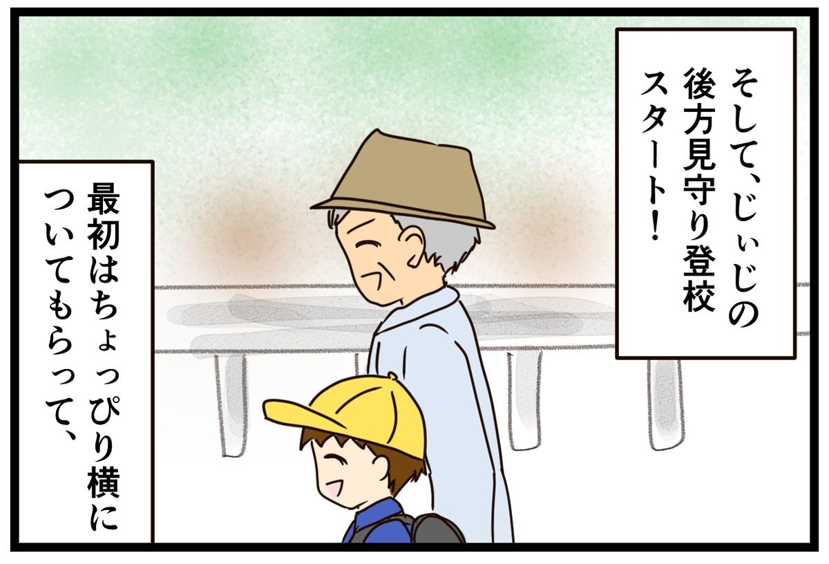 たっくん登校物語【第14話】「じぃじの付き添い登校」 まだ一抹の不安はありつつも、 「いつまでも『来てもらえる』とおもうのもよくないから」 と、いったんここで打ち切りました。その後は… #付き添い登校 #登校しぶり #育児漫画 #コミックエッセイ #小学生男子 hisanon.blog.jp/archives/10795… pic.x.com/qR8xCBrKSu