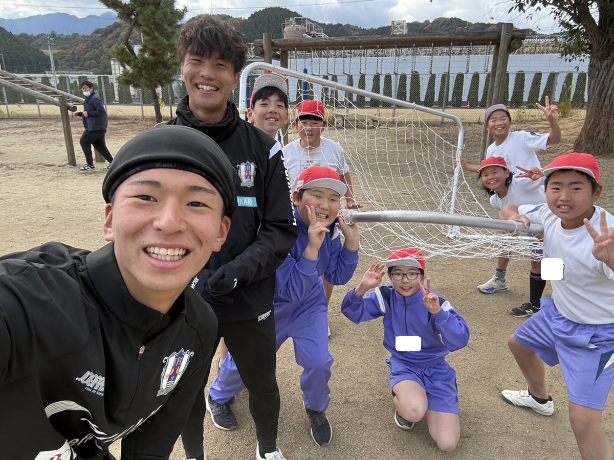 #ホムカツッ!🏫 八幡浜市立 #宮内小学校#森山公弥 選手、#福島隼斗 選手が訪問させていただきました📷 あいにくの天候でしたが、校庭が芝生という珍しい学校でしたので、選手たちと思いっきりサッカーを楽しんでいただきました⚽️⚽️ #ehimefc #学校訪問 #ホームタウン活動 #1市町1選手応援事業 pic.x.com/QsmvLyFenT