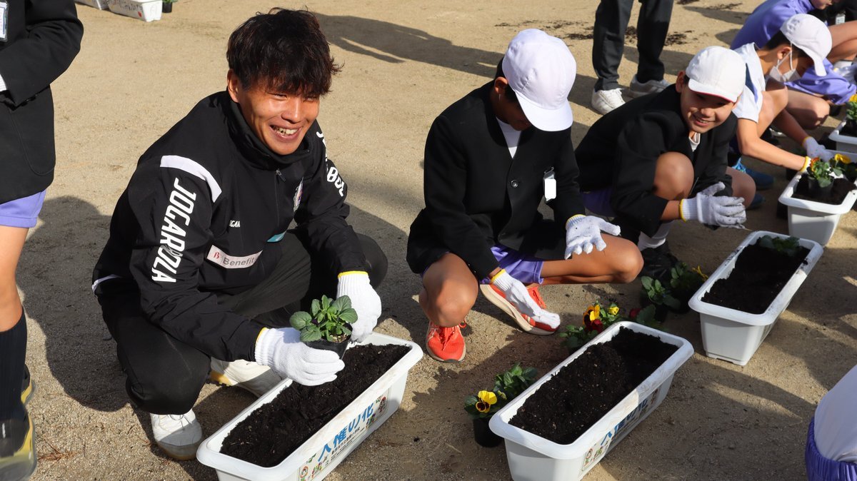 #ホムカツッ! 12月4日に、#森山公弥 選手、#行友翔哉 選手が新居浜市立 #惣開小学校 に訪問、#人権の花運動 を実施いたしました🌸 サッカー教室の前に、パンジーの苗植えも実施いたしました🌼 #ehimefc #学校訪問 #ホームタウン活動 #人権啓発運動 #人権の花運動 #新居浜市 pic.x.com/h03I3BKxTf