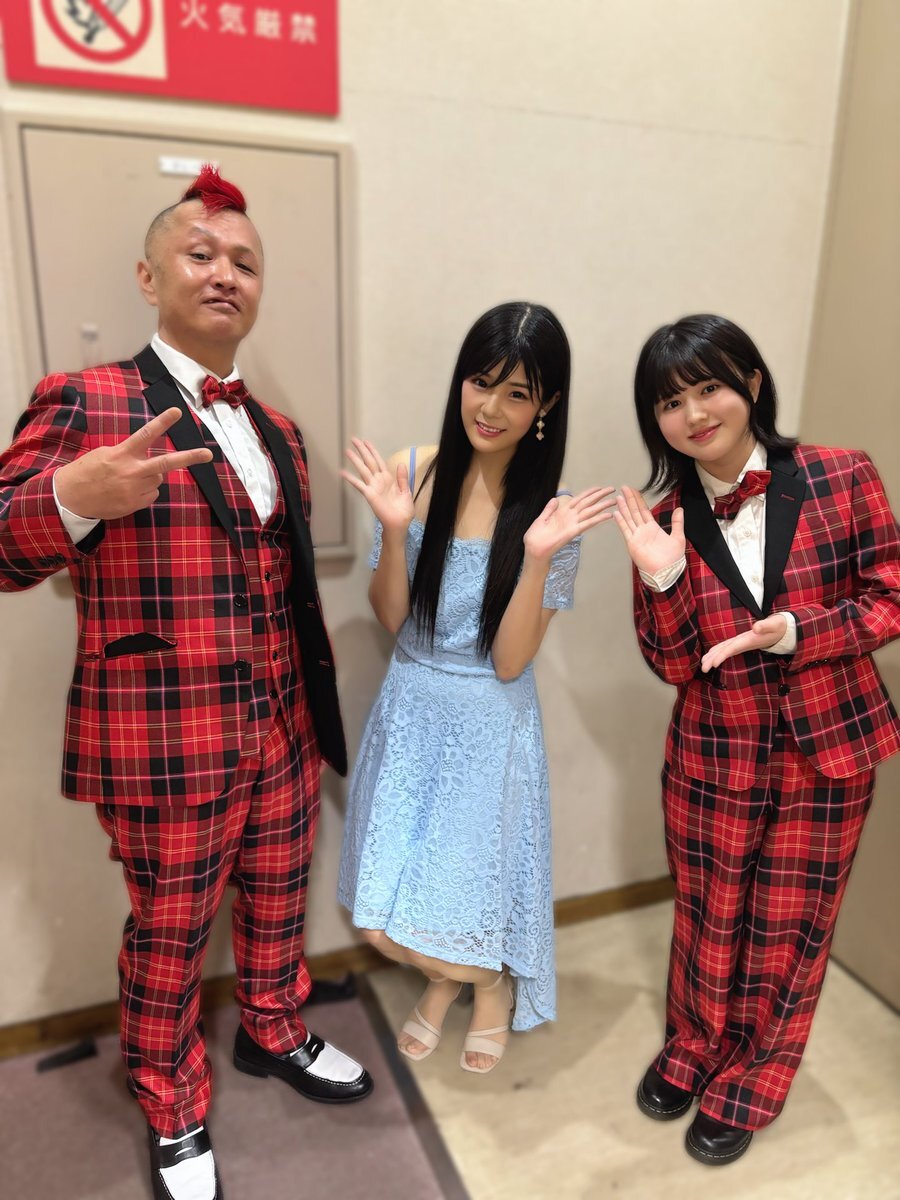 昨日のライブのアシスタントMCの、Y-SELASと言うグループの緋名さんと記念撮影🎵 スラ~っとしてて、めっちゃ綺麗な子だったよ👍️ #TEPPEN #完熟フレッシュ #緋名 pic.x.com/wzHAJLUFDi x.com/hisaponpopon/s…